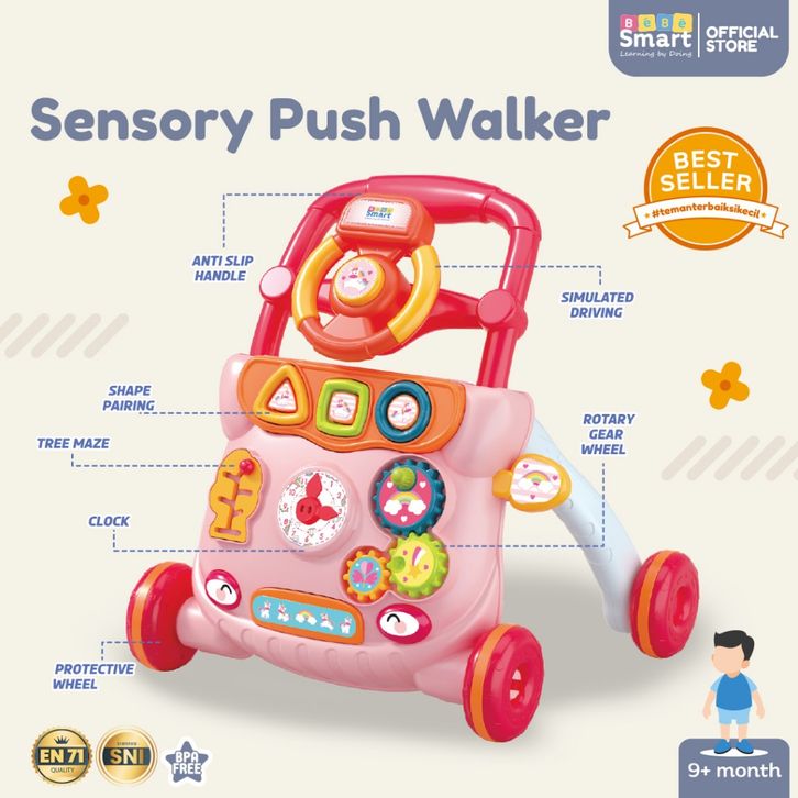BEBE SMART Mainan Dorongan Bayi Belajar Jalan Sensory Push Walker Smart Baby Alat Bantu Jalan BPA FREE Termurah