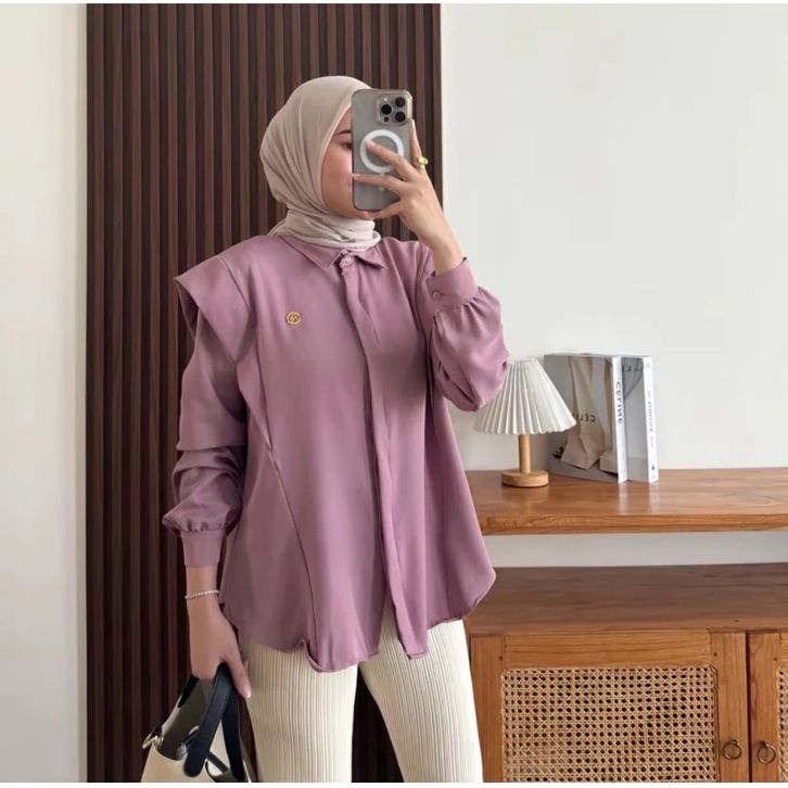 Atasan Wanita Kekinian Andini Blouse Shakila Polos Blouse Wanita Lengan Panjang Elegan Baju Atasan Wanita Muslimah