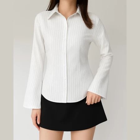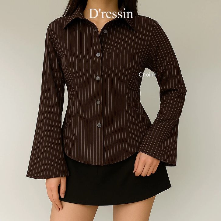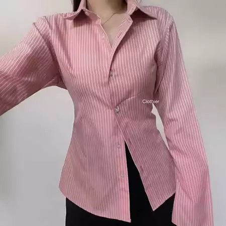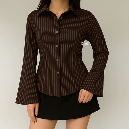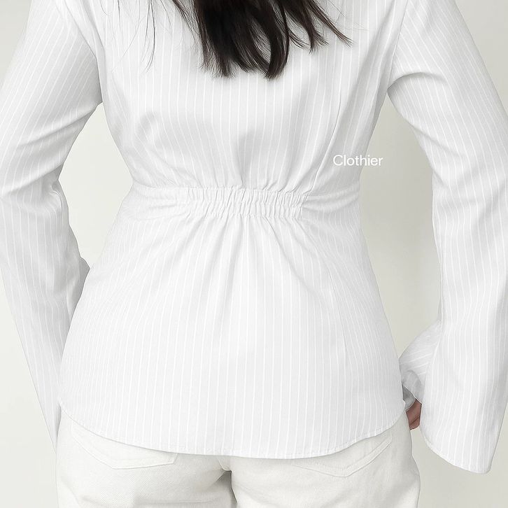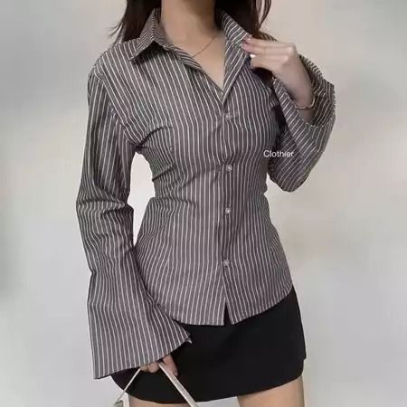 Baju Wanita Slim Fit Trendy Atasan Cewek Lengan Flare Kekinian Kemeja Wanita Whispie Motif Salur Modis Elegan
