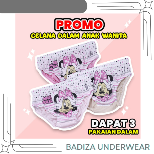 [Bundling 6 pcs] Celana Dalam Anak Perempuan Underwear 3 in 1 Karakter Minnie Mouse Bahan Katun Usia 3 4 5 6 7 8 Tahun