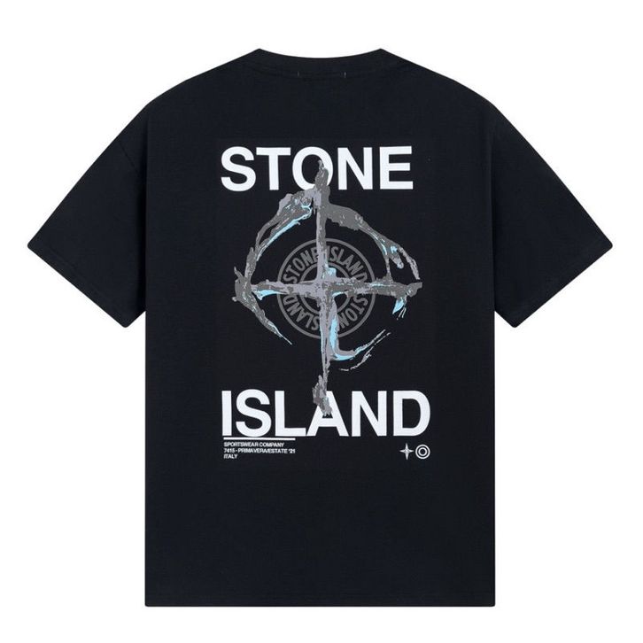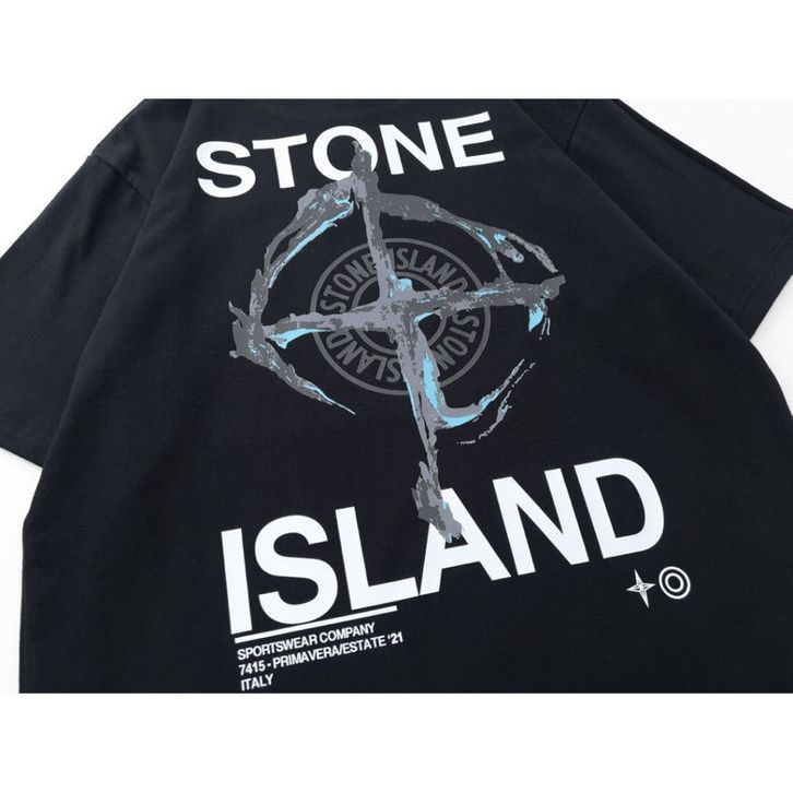 Kaos STONE ISLAND Hitam Text Kecil Premium Fulltag