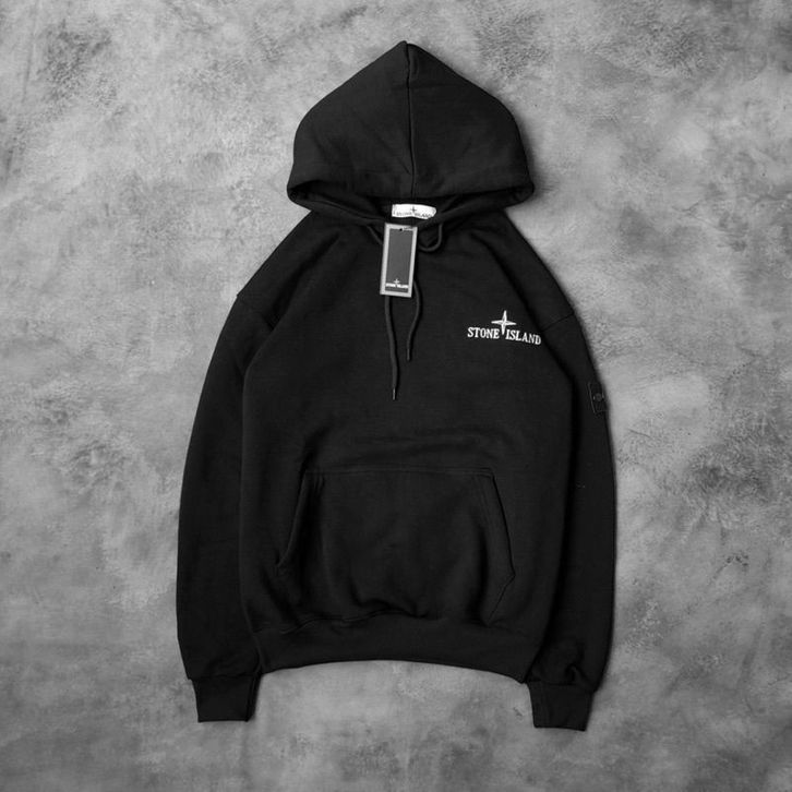 Hoodie Sweater Jaket STONE ISLAND Hitam Logo Classic Embroid Fulltag + Aksesoris
