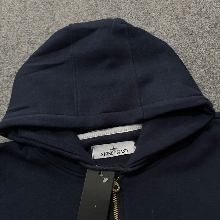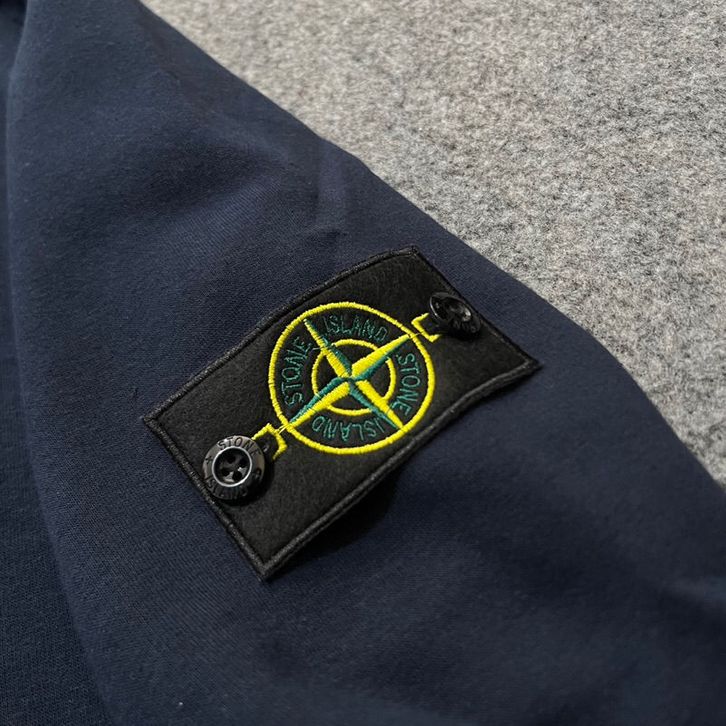 Jaket Sweater Resleting STONE ISLAND Biru Navy Basic Patch Pinggir