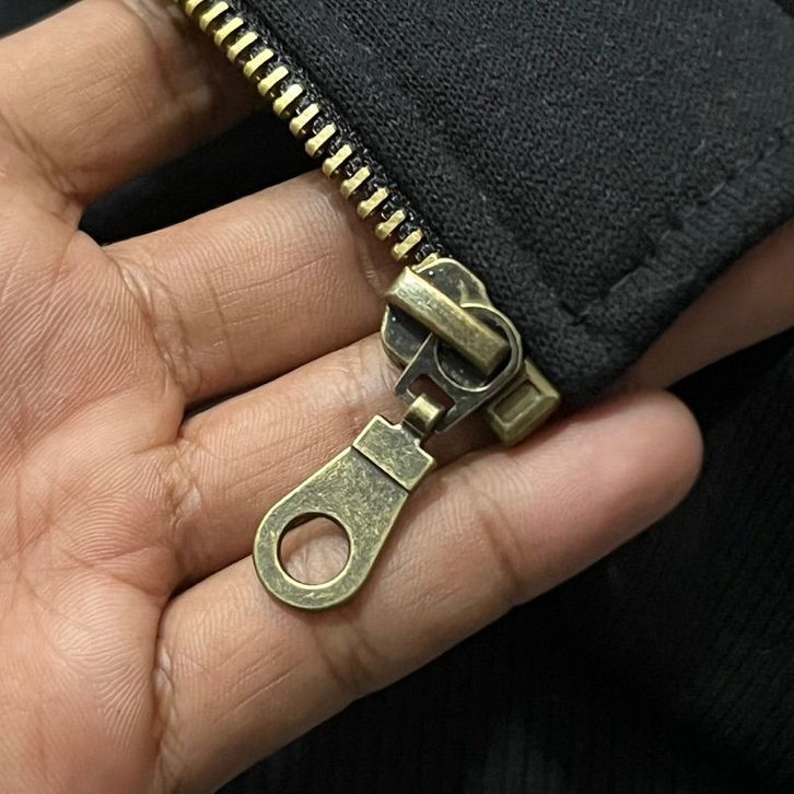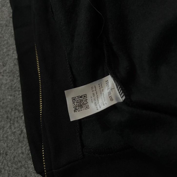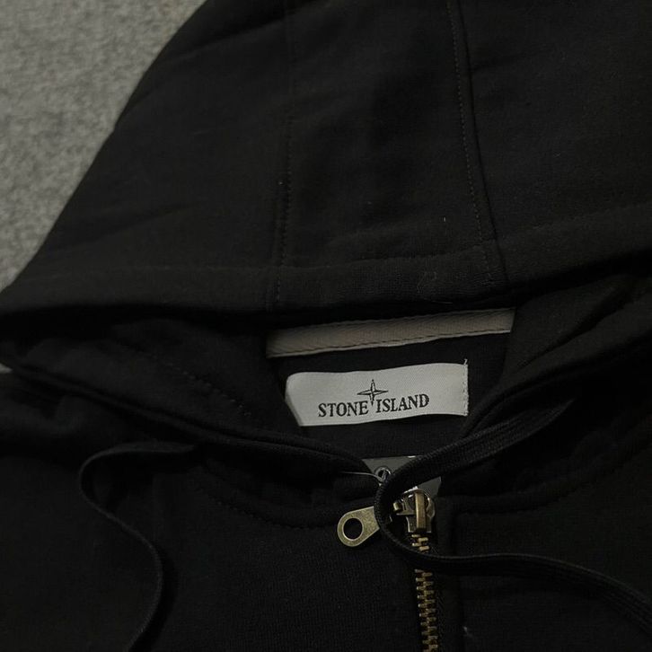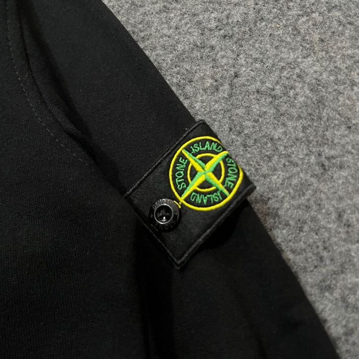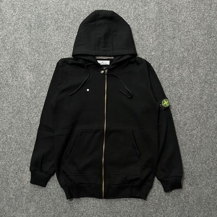 Jaket Sweater Zipper STONE ISLAND Hitam Pekat Logo Pinggir Fulltag + Aksesoris