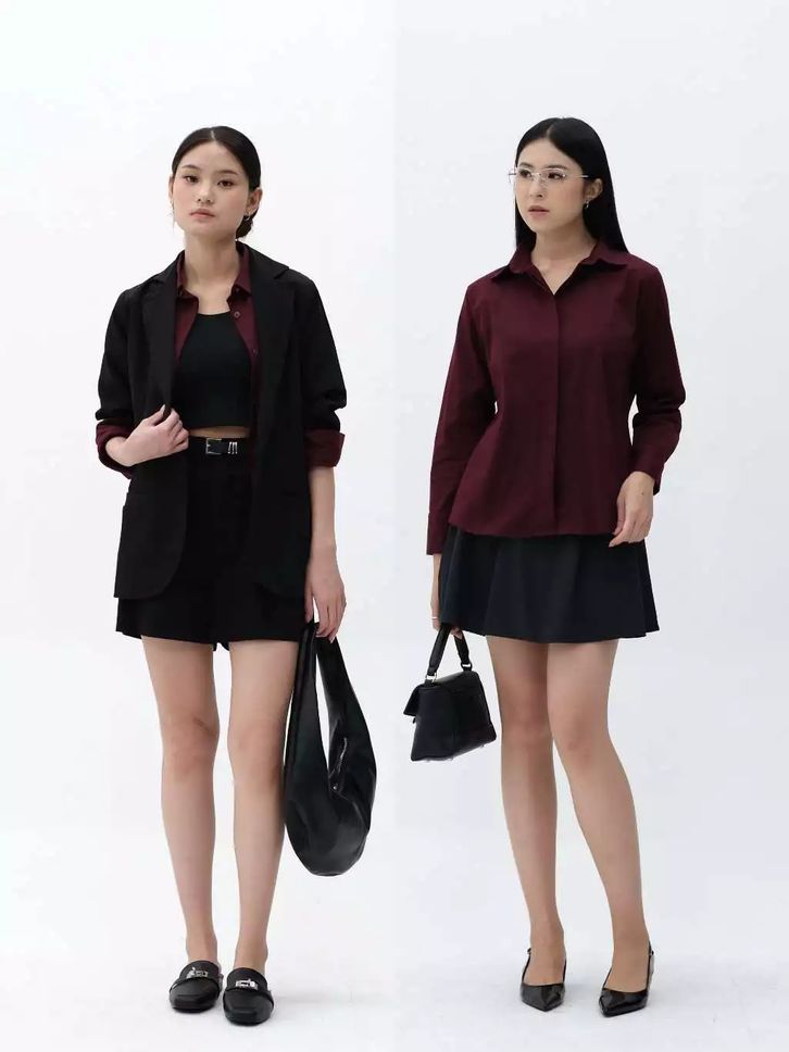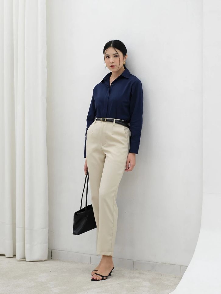 Kemeja Katun Loose Fit Wanita Aina Shirt HULM Atasan Kemeja Polos Wanita Dewasa Lengan Panjang