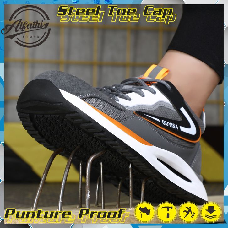 Sepatu Safety Pria AlFathi Sepatu Safety Sneakers Sport New Guyisa Sepatu Olahraga Outdoor Pria Grey Orange Original