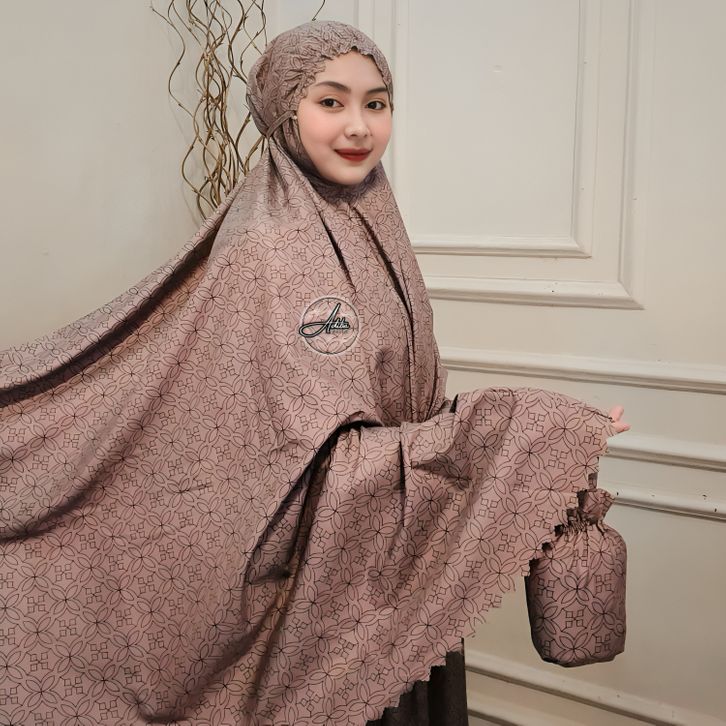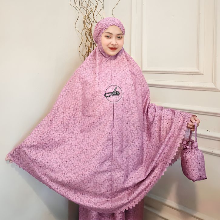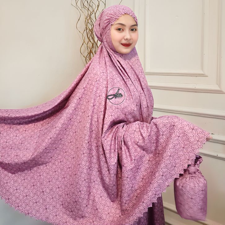 Adiba Mukena Travel Dewasa Terbaru Motif Mewah Sudah Laser Cut Free Mini Pouch I Mukenah dewasa terbaru 2025