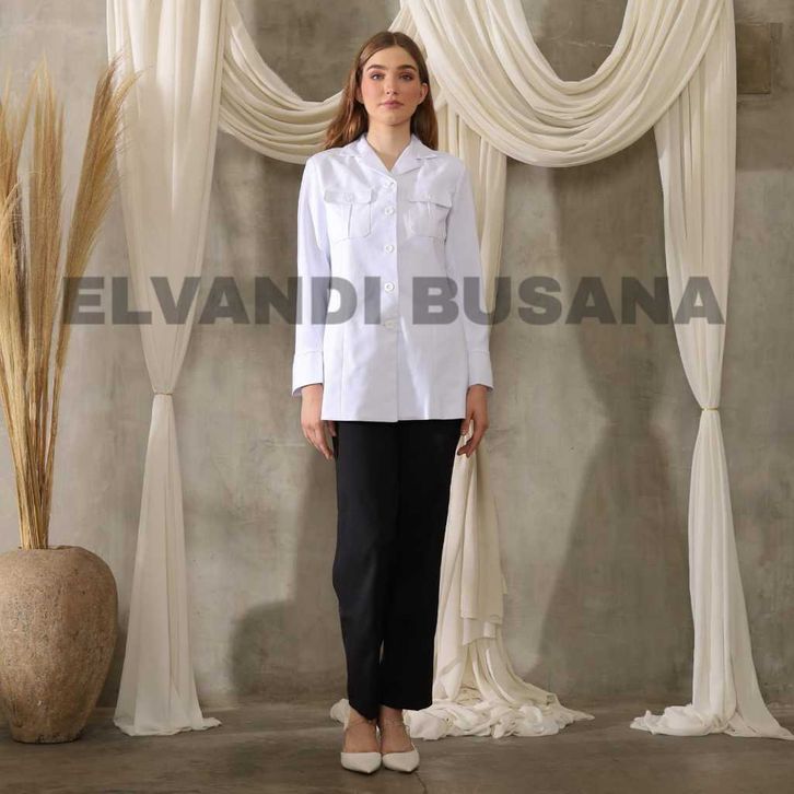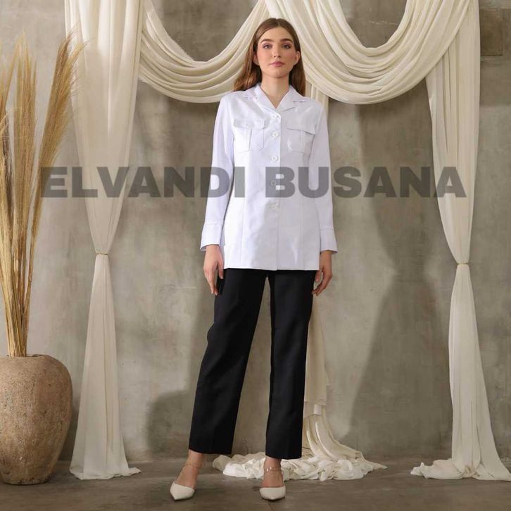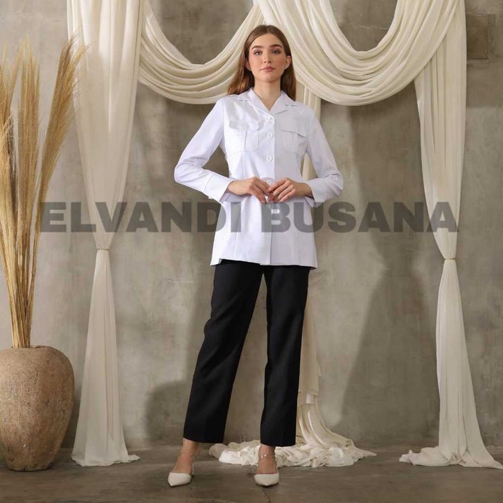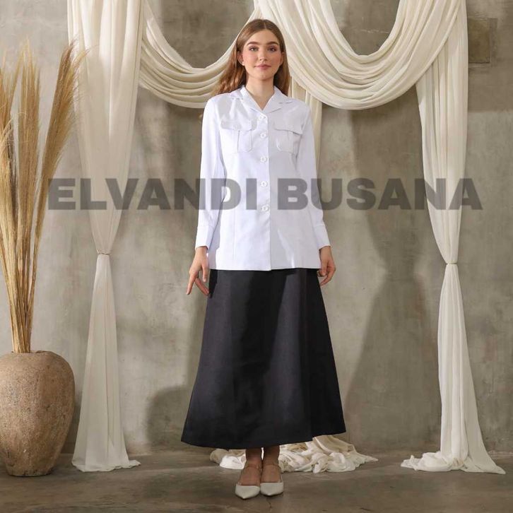 Blazer Cewek Seragam PNS Baju PDH Cewek Pakaian Dinas Pemda Khaki Lengan Panjang Warna Putih Hitam Ukuran S-5L