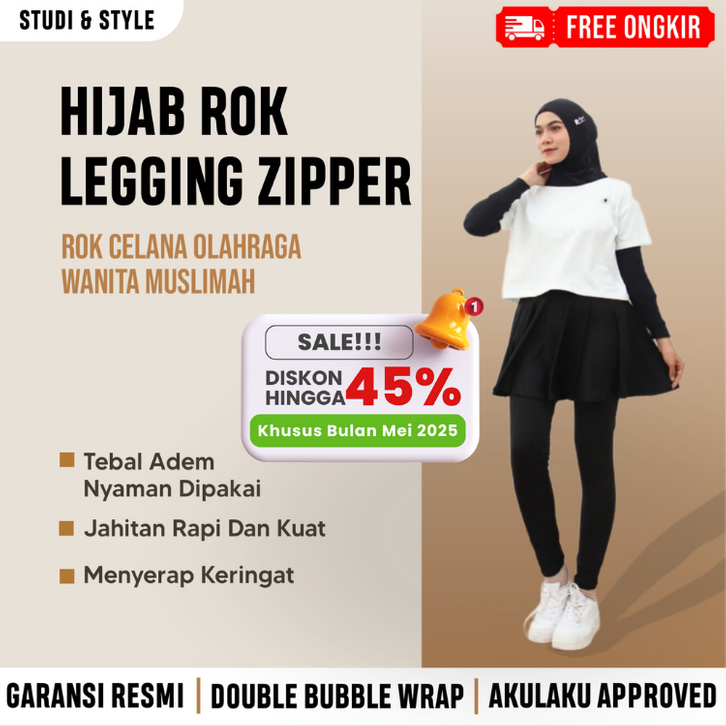 Rok Legging Premium Zipper Celana Olahraga Cewek Muslimah 90289 Sporty Lari Joging Badminton Bahan Jersey Premium Tebal