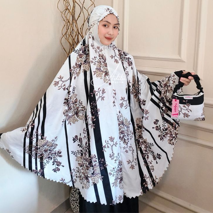 Adiba Muslim | Mukena Dewasa Traveling Motif Terbaru Resleting 2in1 Laser Cut Bahan Katun Murah I Mukenah dewasa terbaru