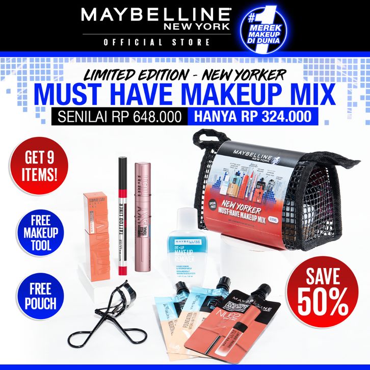 PAKET MAKEUP SET HEMAT MAYBELLINE NEW YORKER MUST HAVE MAKEUP MIX Lengkap Seserahan Paket kosmetik MUA