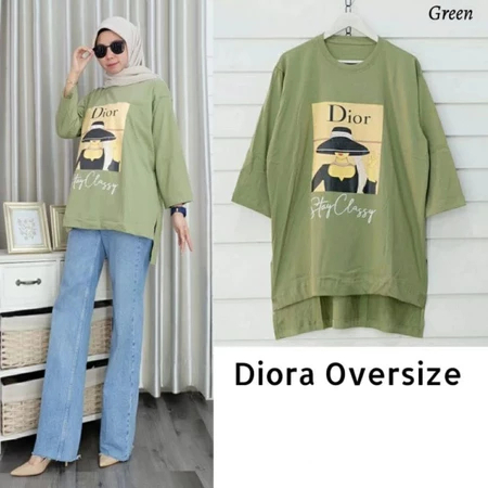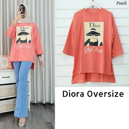 Kaos Wanita Kekinian Diora Bl Oversized Combed Jumbo Bahan Adem Blouse Korean Style Lengan Panjang Terbaru