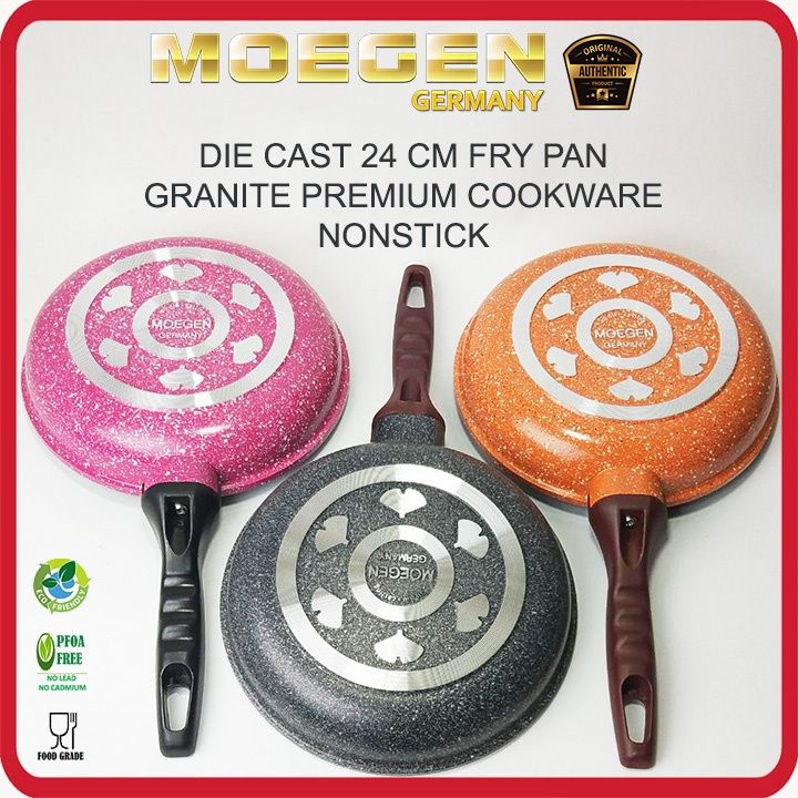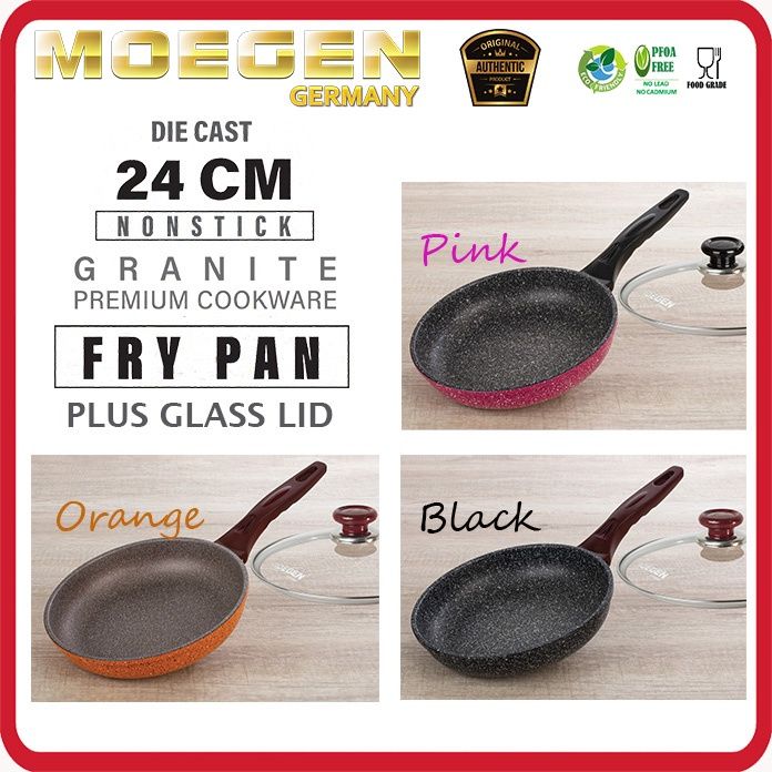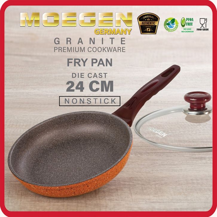 MOEGEN Fry Pan 24cm Granite Series Plus Tutup Kaca Anti Lengket