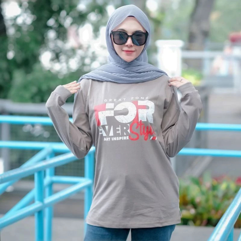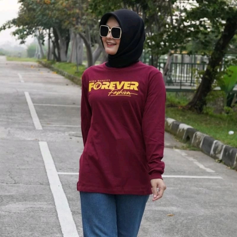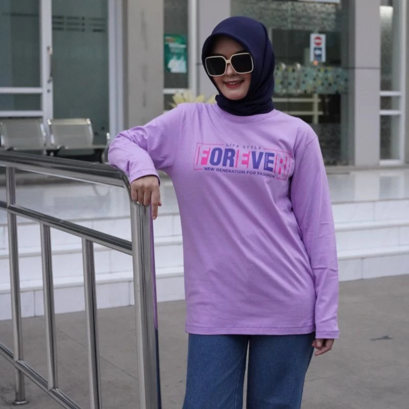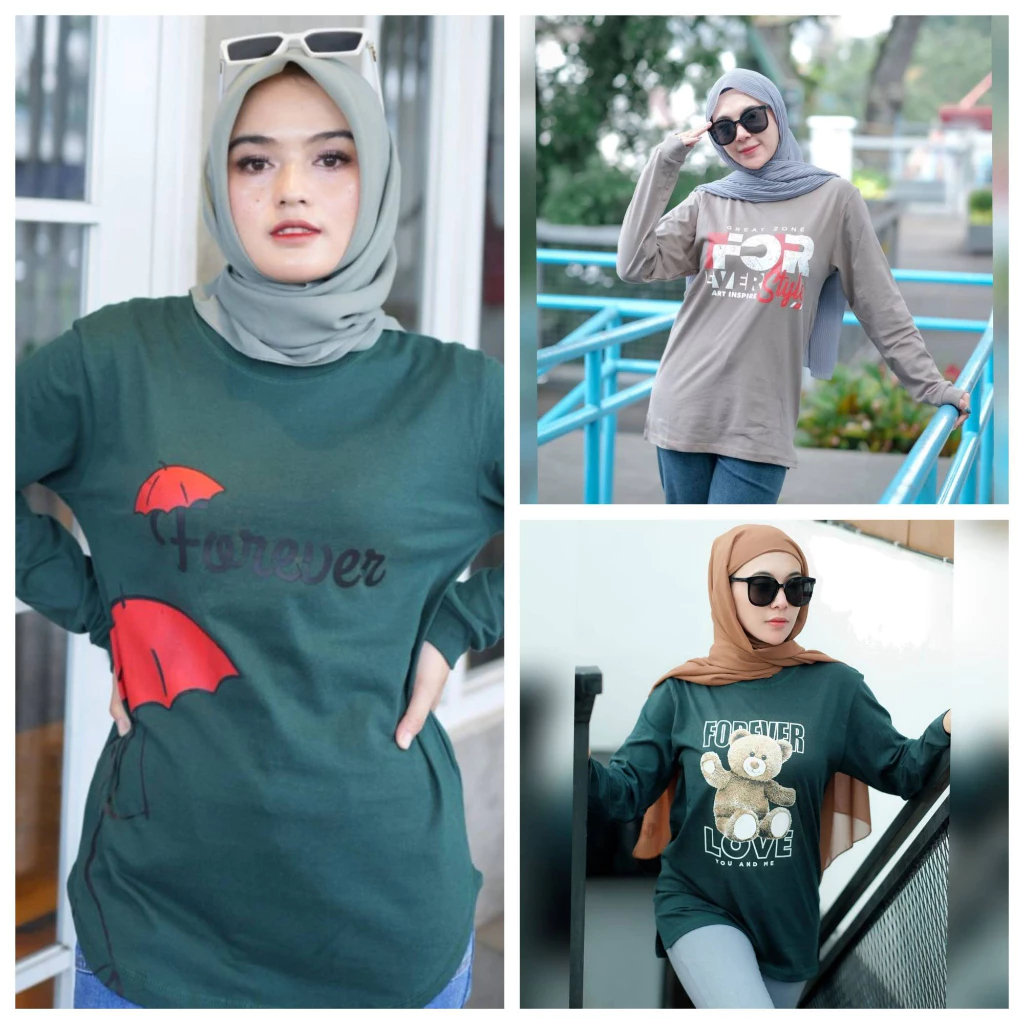 Atasan Kaos Wanita Kekinian Desain Motif Hijab Muslimah Forever Lengan Panjang Bahan Adem Beli 4 Gratis 1 Acak
