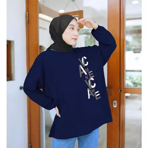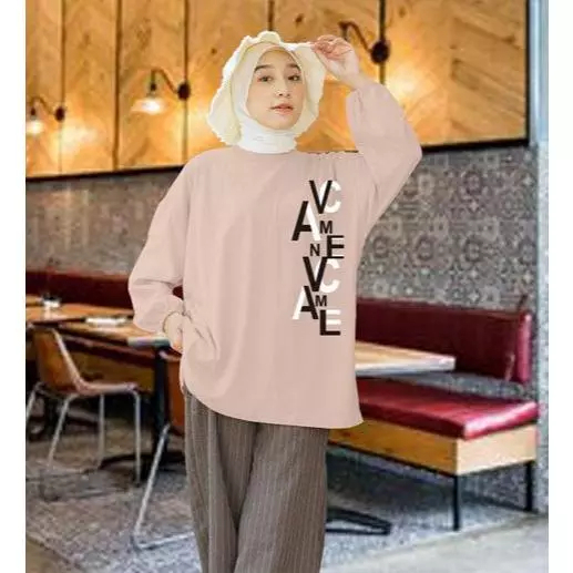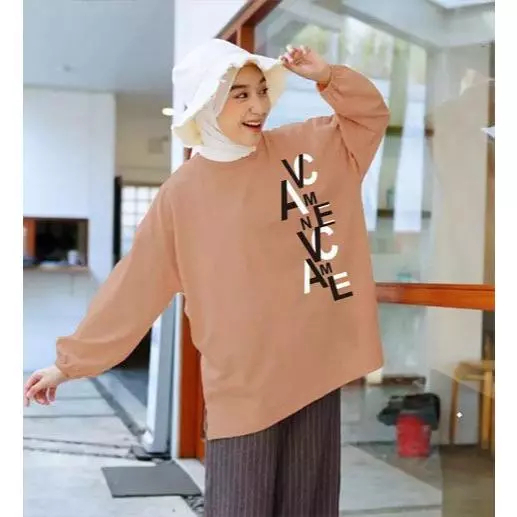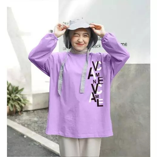 Kaos Oversize Wanita Kekinian Lengan Panjang Karet Ld 130cm Digital Print Vava Atasan Kaos Wanita Jumbo Bahan Adem
