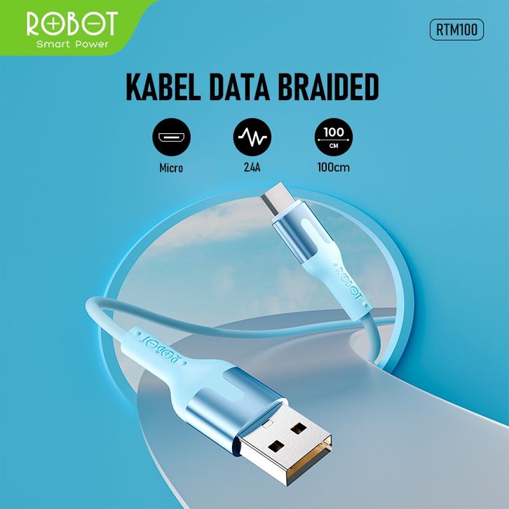 ROBOT Kabel Data RTM/RTL100/RTC Type C Micro USB Lighting 1M Data Cable Original - Garansi 1 Tahun