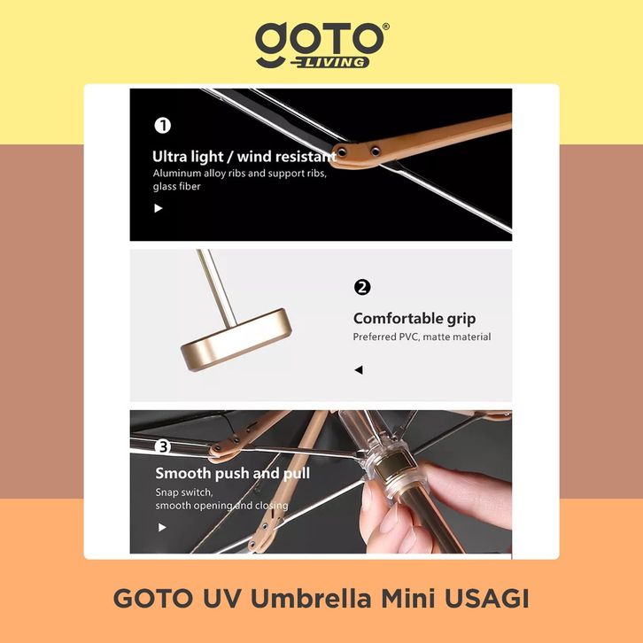 GOTO USAGI PAYUNG KECIL LIPAT MINI GOLD TRAVEL POLOS UMBRELLA ANTI UV TERBARU TERLARIS
