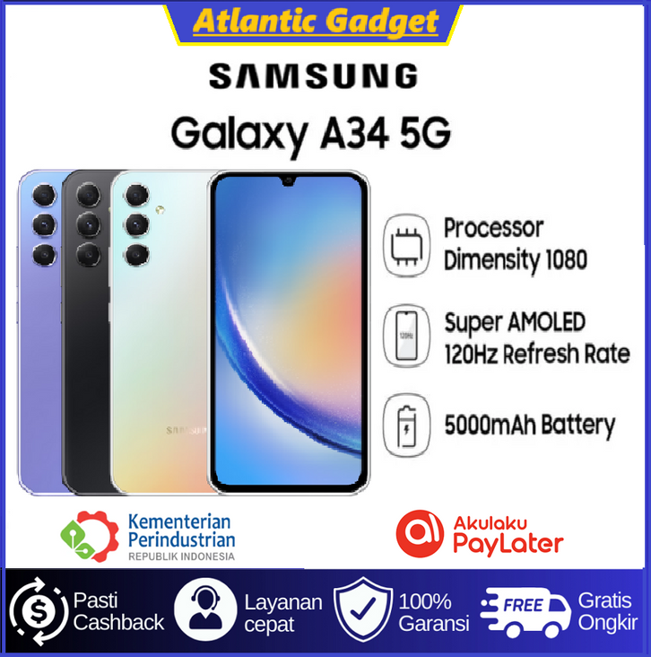 Samsung Galaxy A34 5G RAM 8/256GB | MediaTek Dimensity 1080 | Layar 6.6" Super AMOLED | Baterai 5000mAh | 48MP Kamera