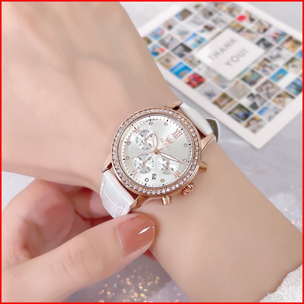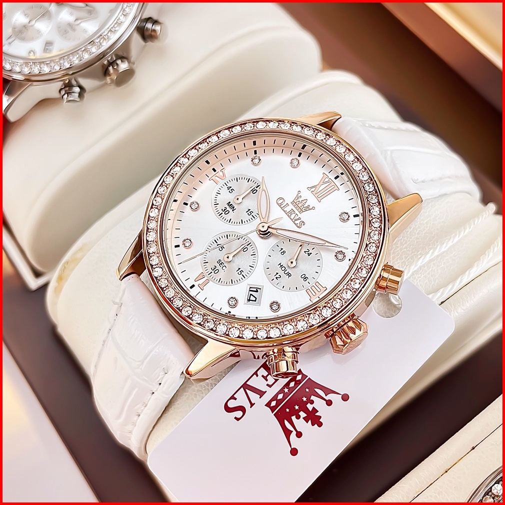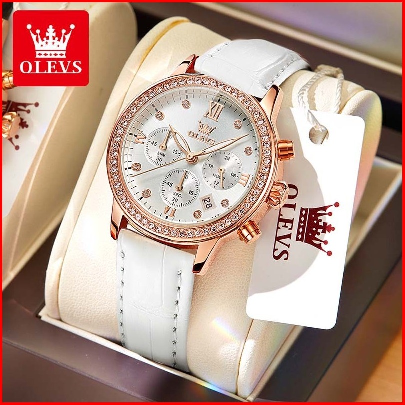 Olevs Jam Tangan Wanita Anti Air Anak Perempuan Kecil Original Kulit Korea Casual Putih Chrono Aktif Watch Women