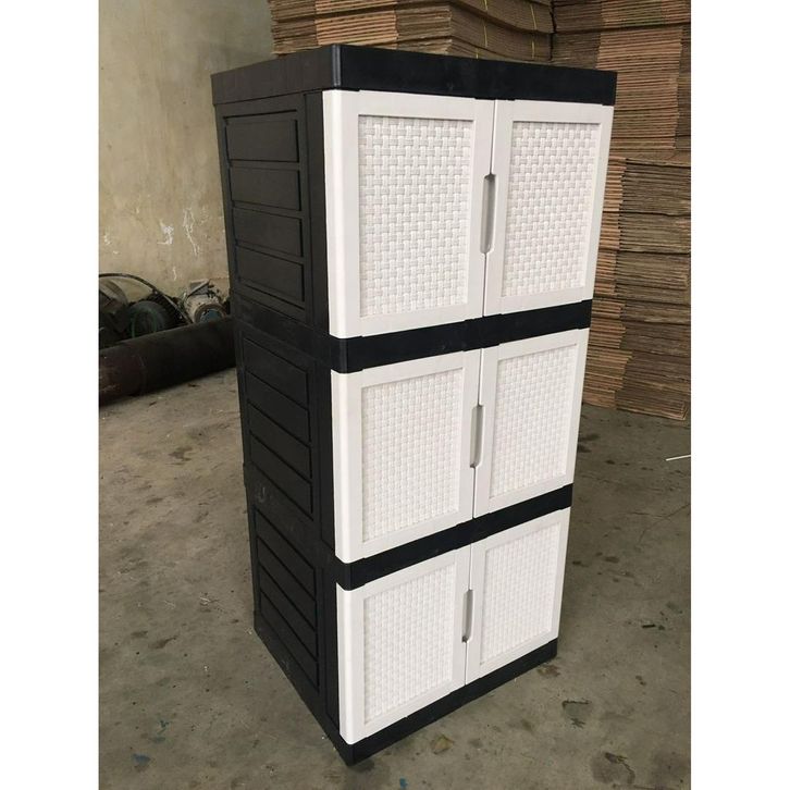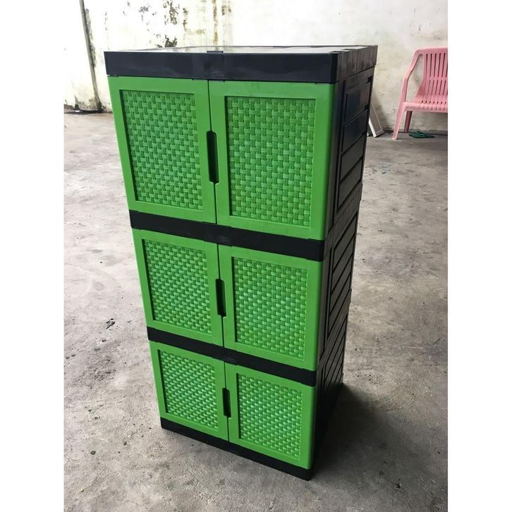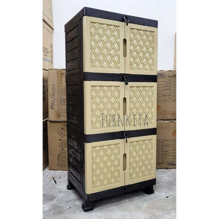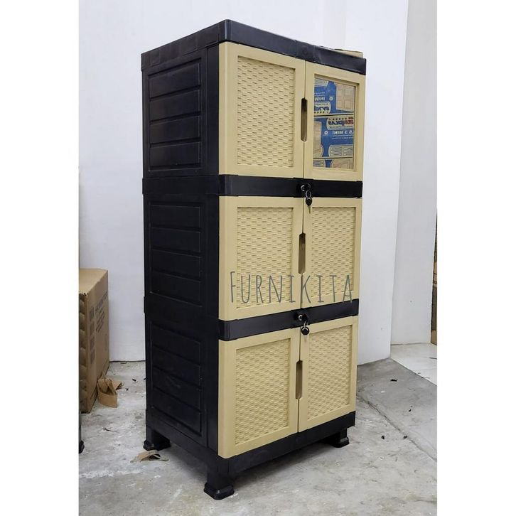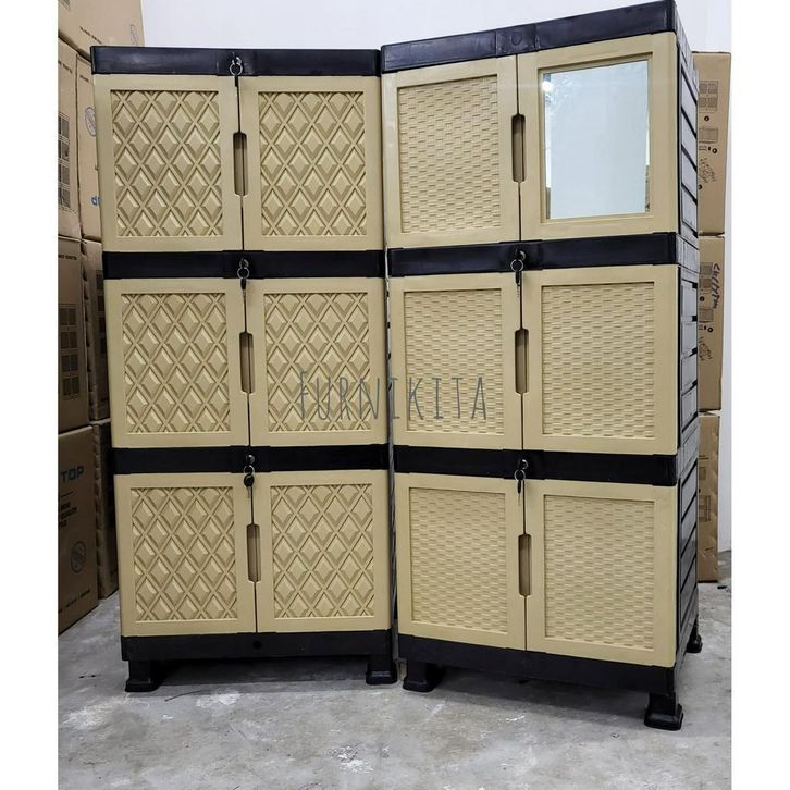 LEMARI PAKAIAN PLASTIK ROTAN DIAMOND MINI SUSUN 3 KUNCI KACA