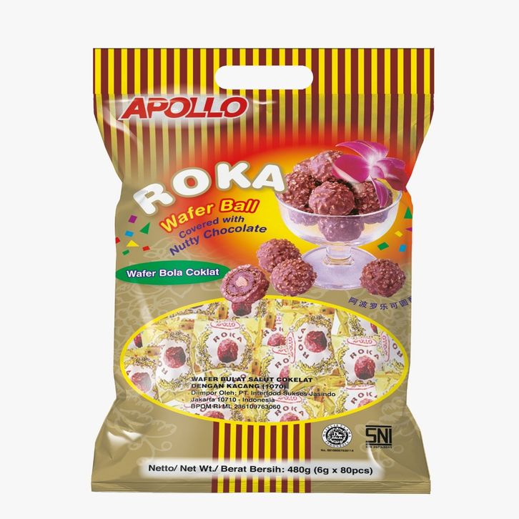 ROKA APOLLO WAFER BALL COKLAT EXP MARET 2025 HALAL MAKANAN RINGAN KEMASAN KUE KERING RASA COKLAT