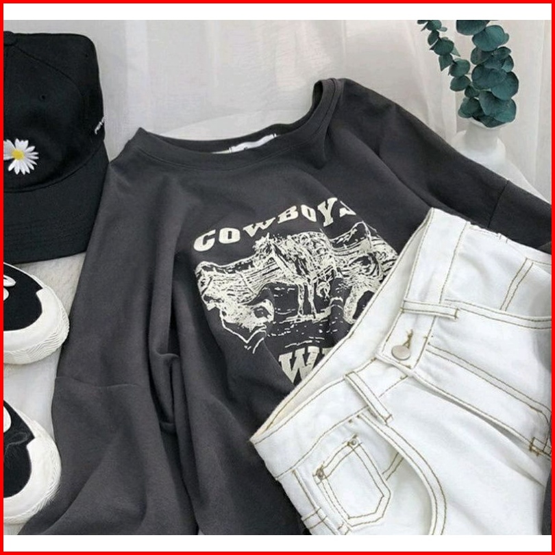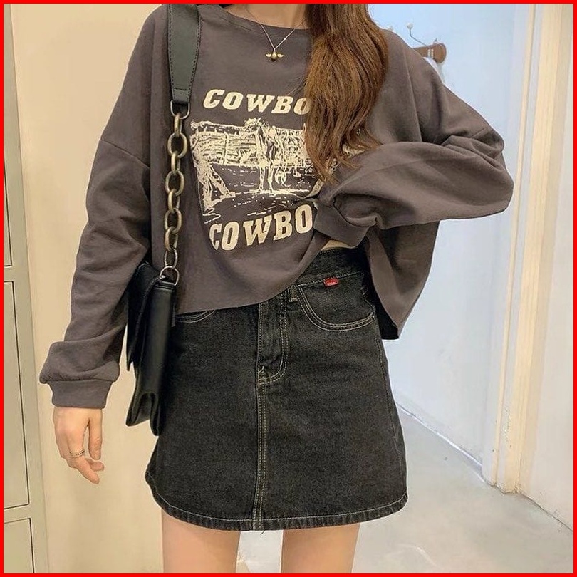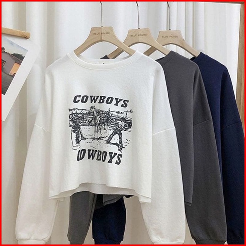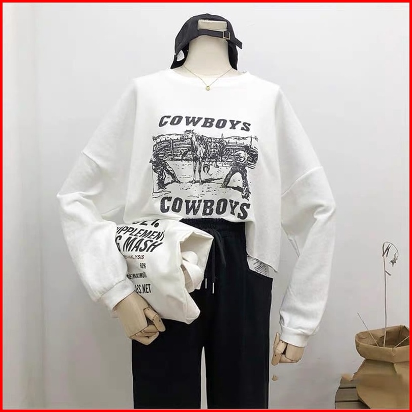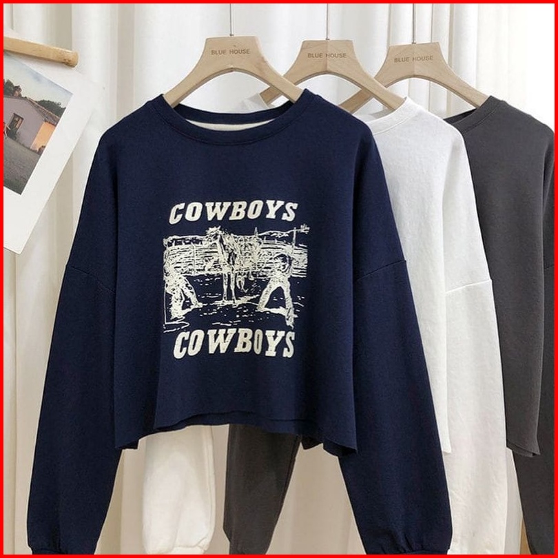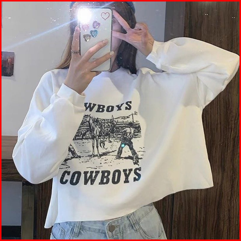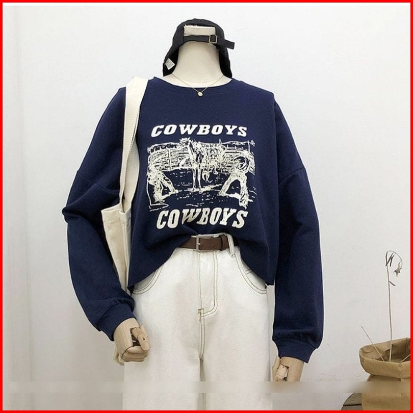 Vallina - Cowboys Crop Sweater Oversized Outerwear Remaja Wanita Korean Style Premium