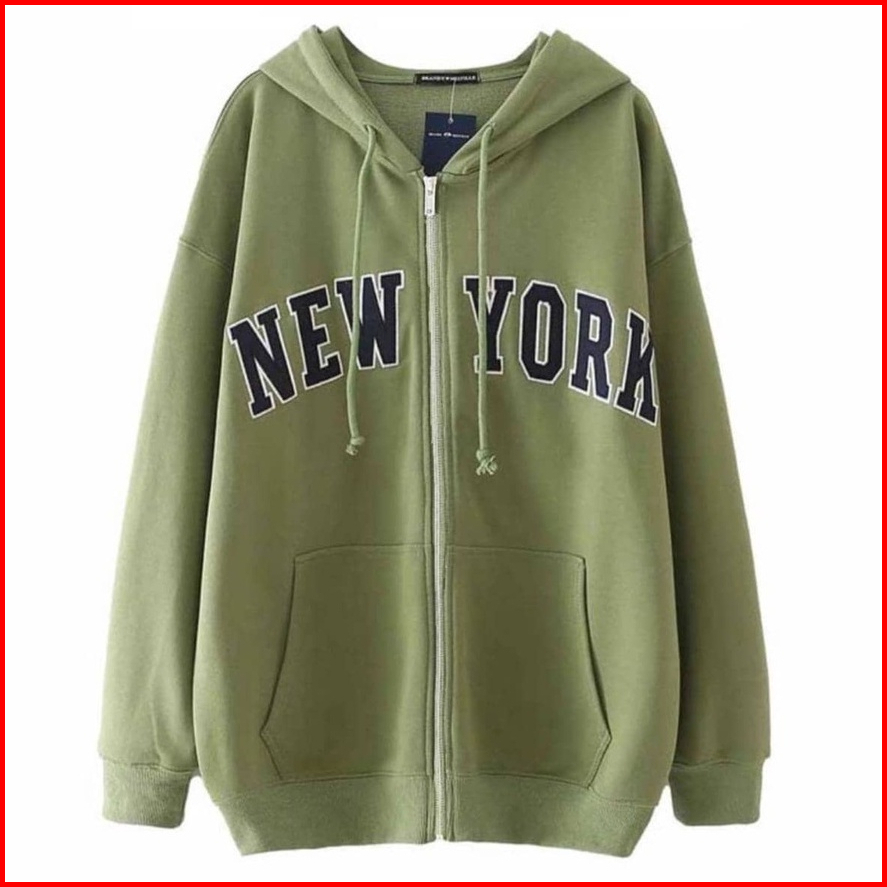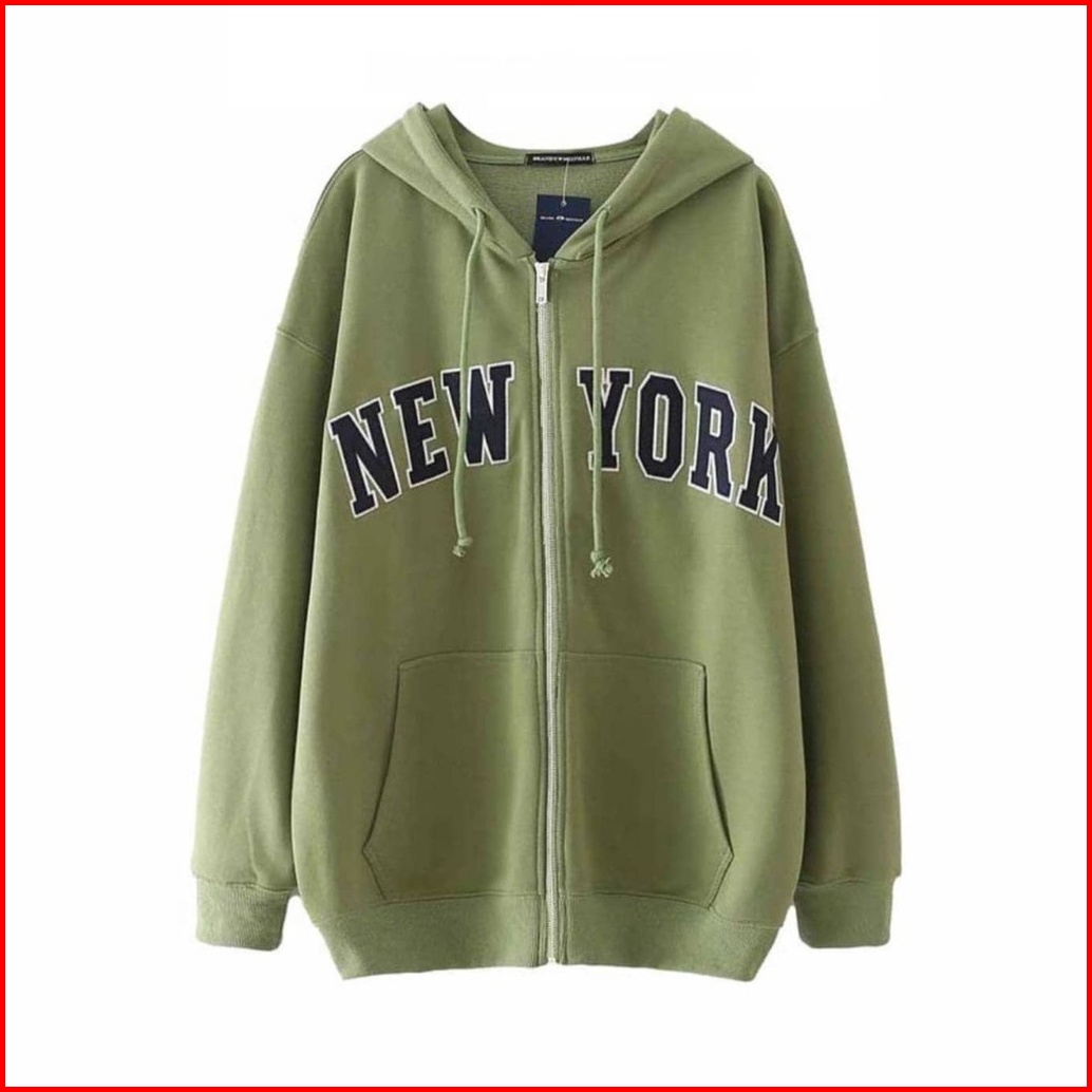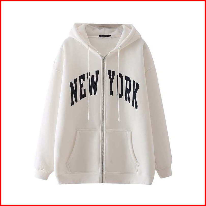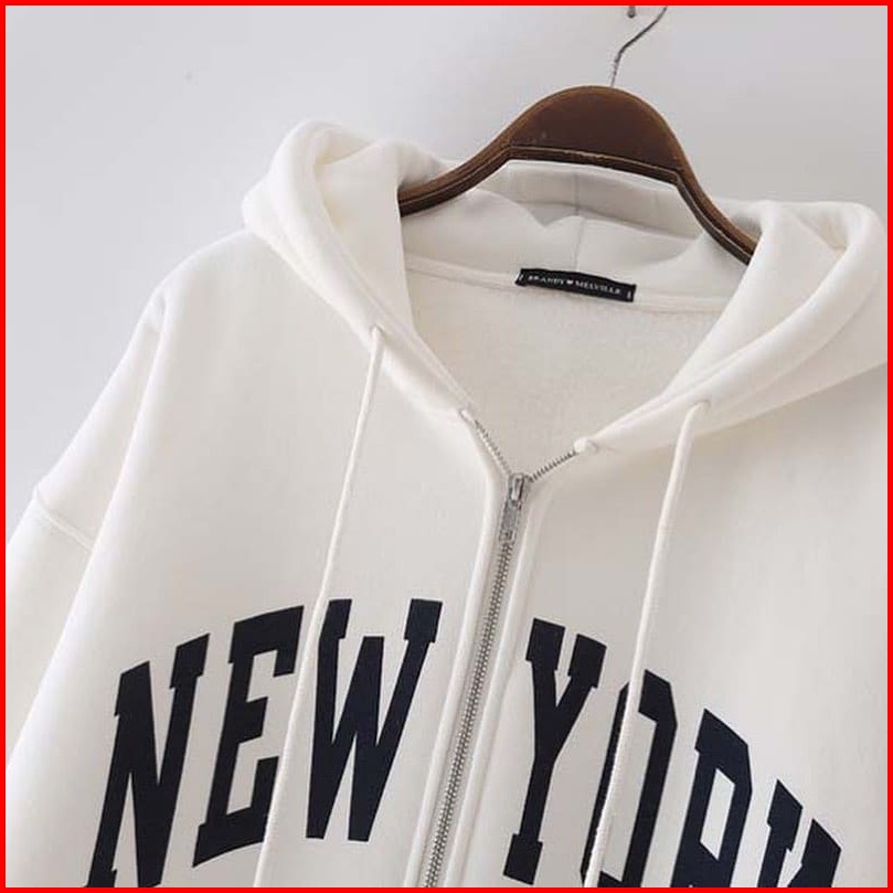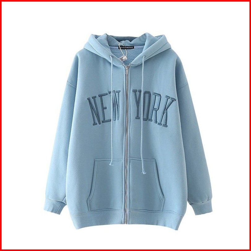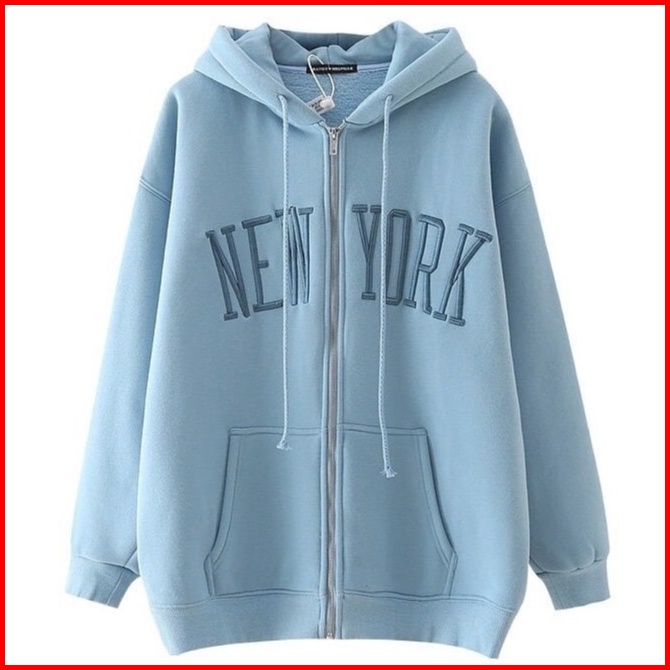 Vallina - Zip Up New York Hoodie Jacket Premium Fleece Tebal Outerwear Remaja Unisex Wanita Pria Korean Style