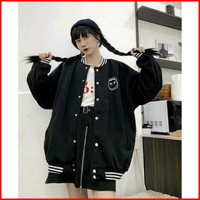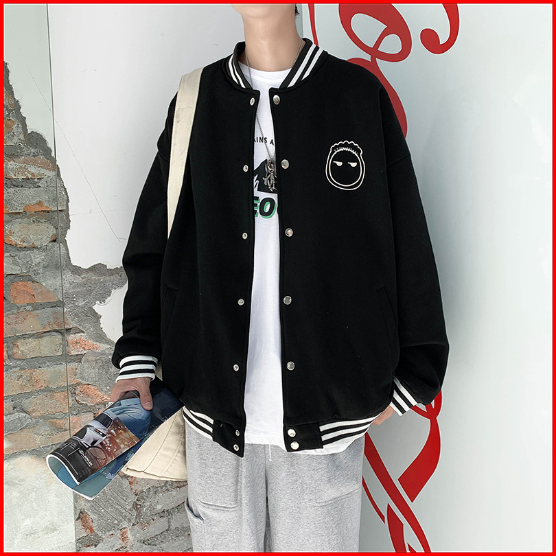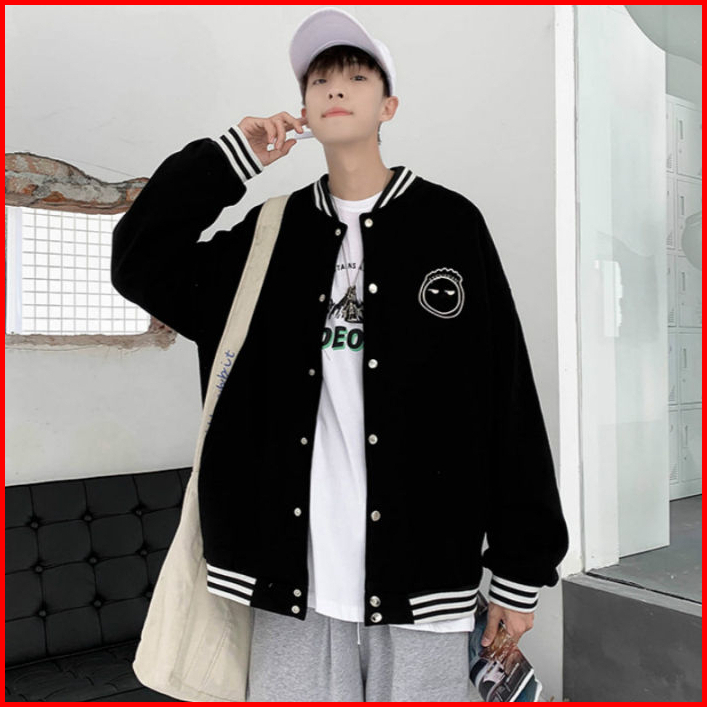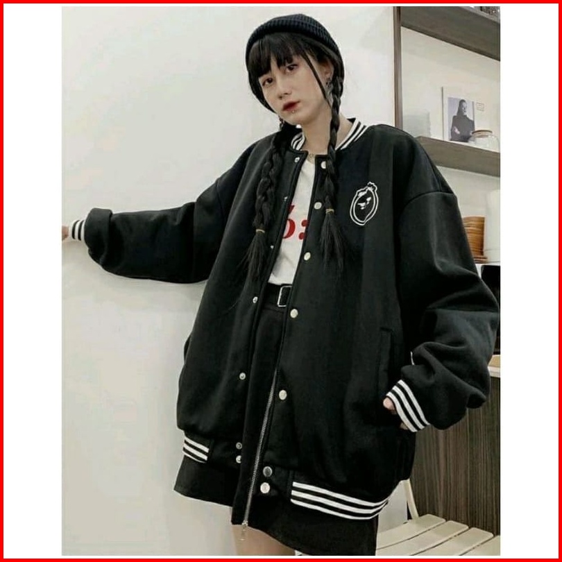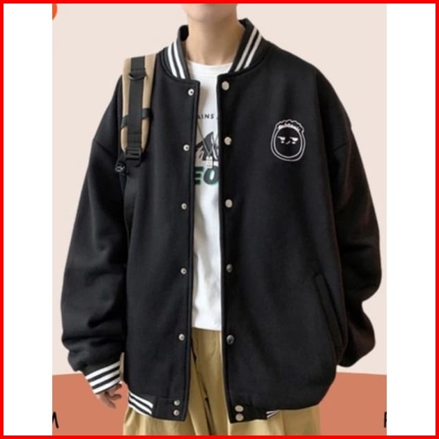 Vallina - Be Smile Baseball Black Listed Jaket Varsity Unisex Wanita Pria Korean Style Premium
