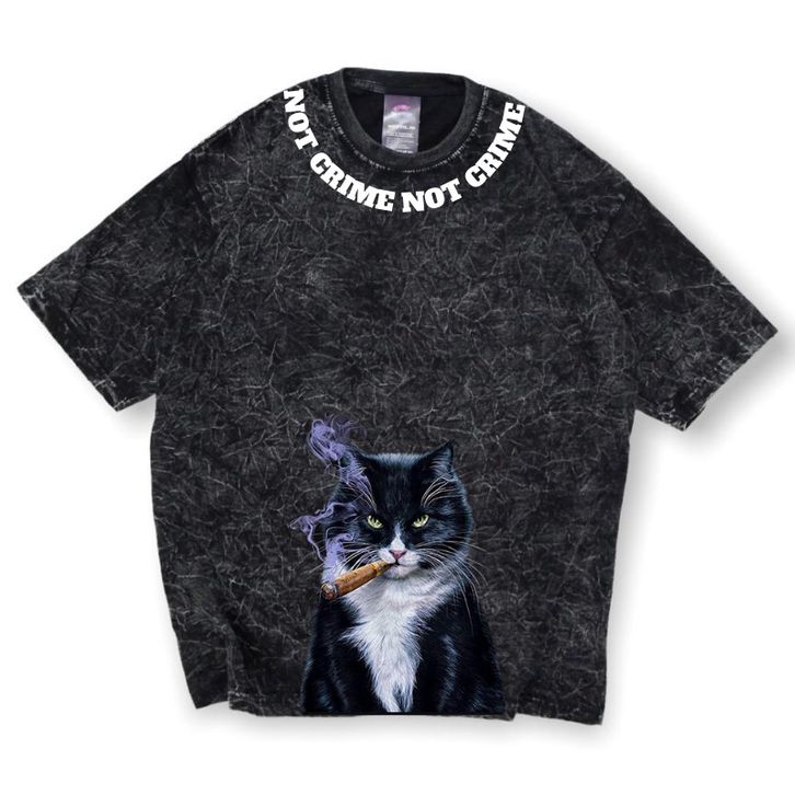 KAOS PRIA Gentil T-shirt Reguler Not Crime Cat Sandwash TERLARIS
