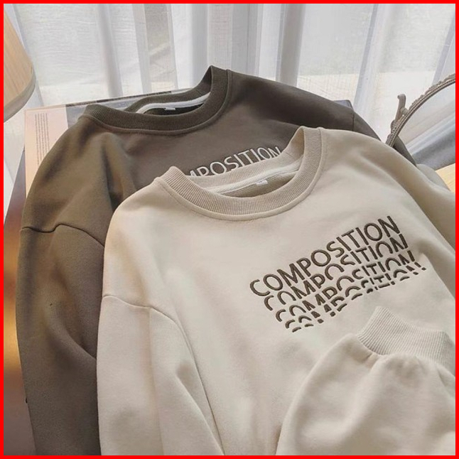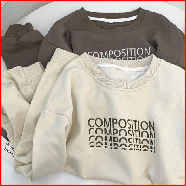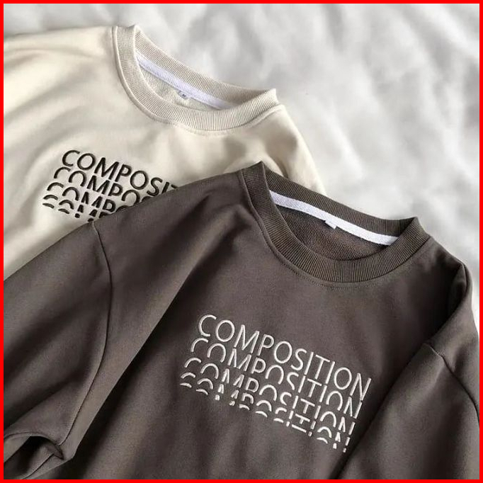 Vallina - Composition Sweater Crewneck Basic Unisex Wanita Pria Korean Style Premium