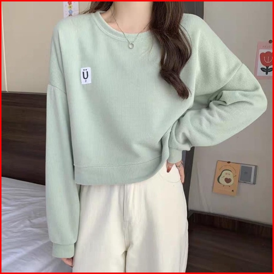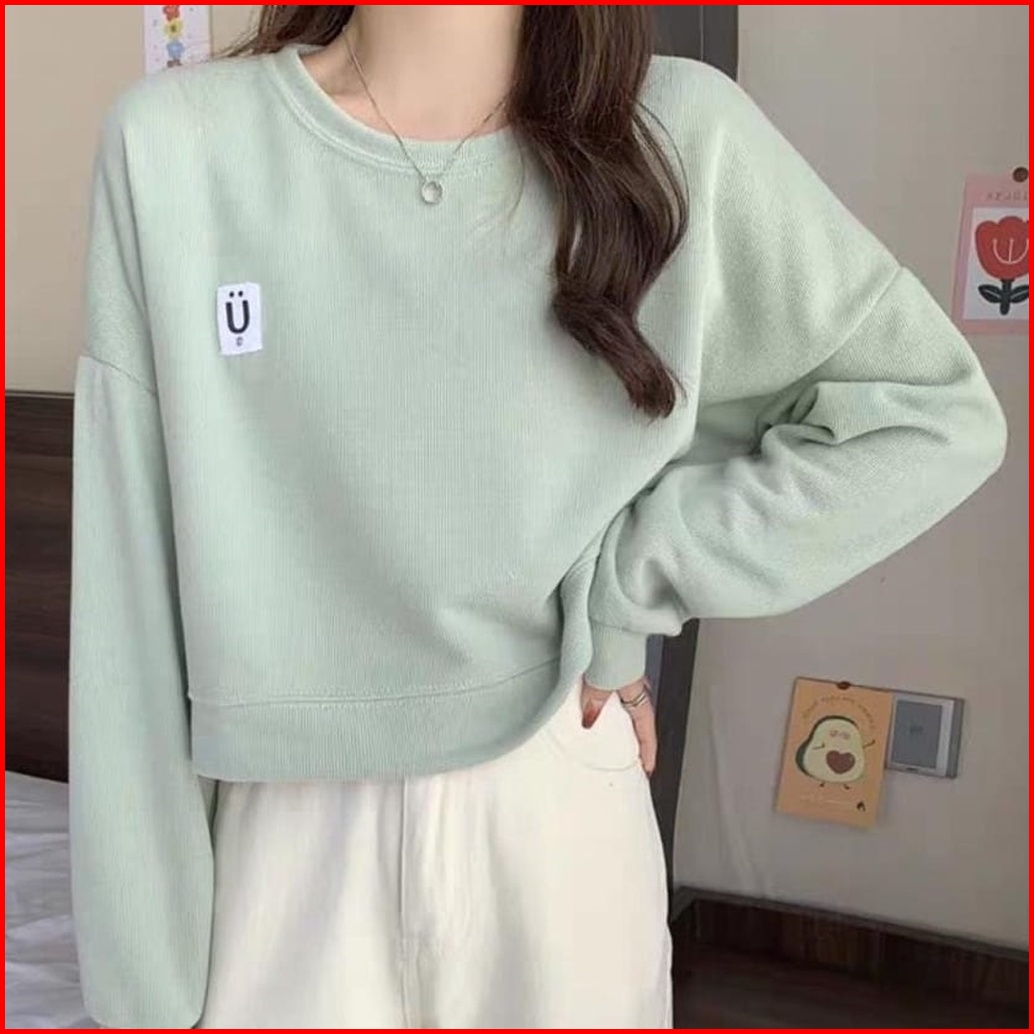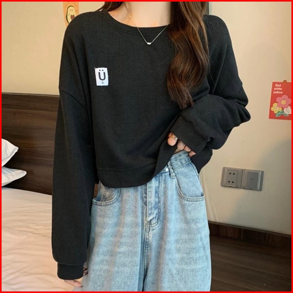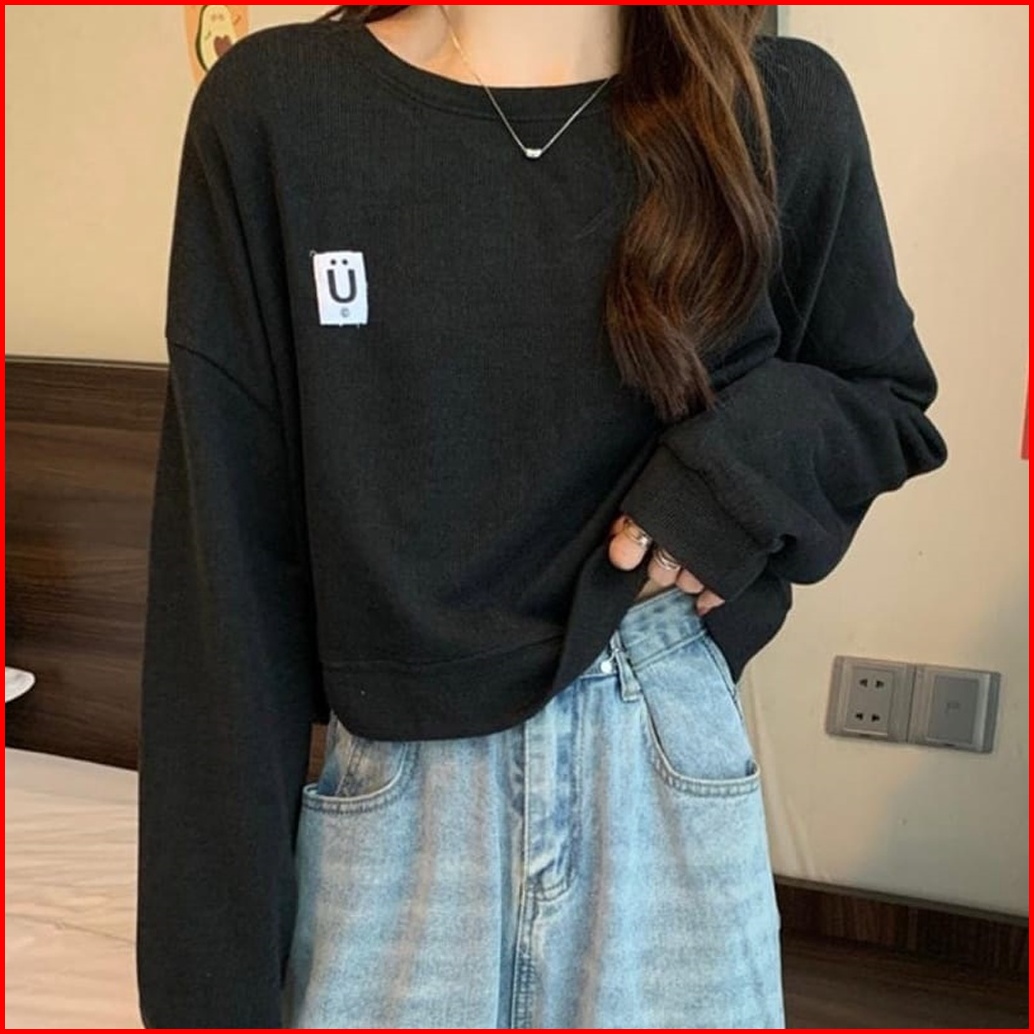 Vallina - Casual Crop Sweater U Smile Plain Basic Outerwear Remaja Wanita Korean Style Premium