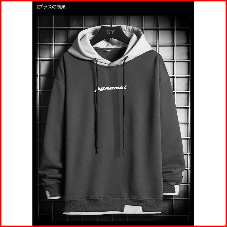 Vallina - Pyramid Combined Hoodie Pull Over Pria Premium Outerwear Remaja Basic Korean Style