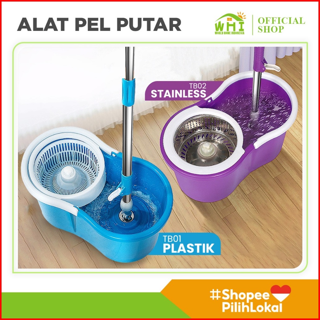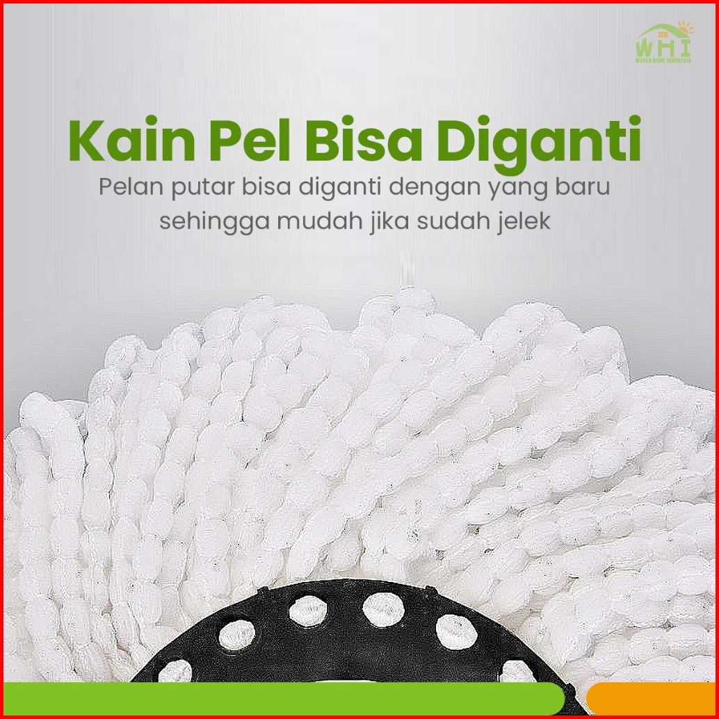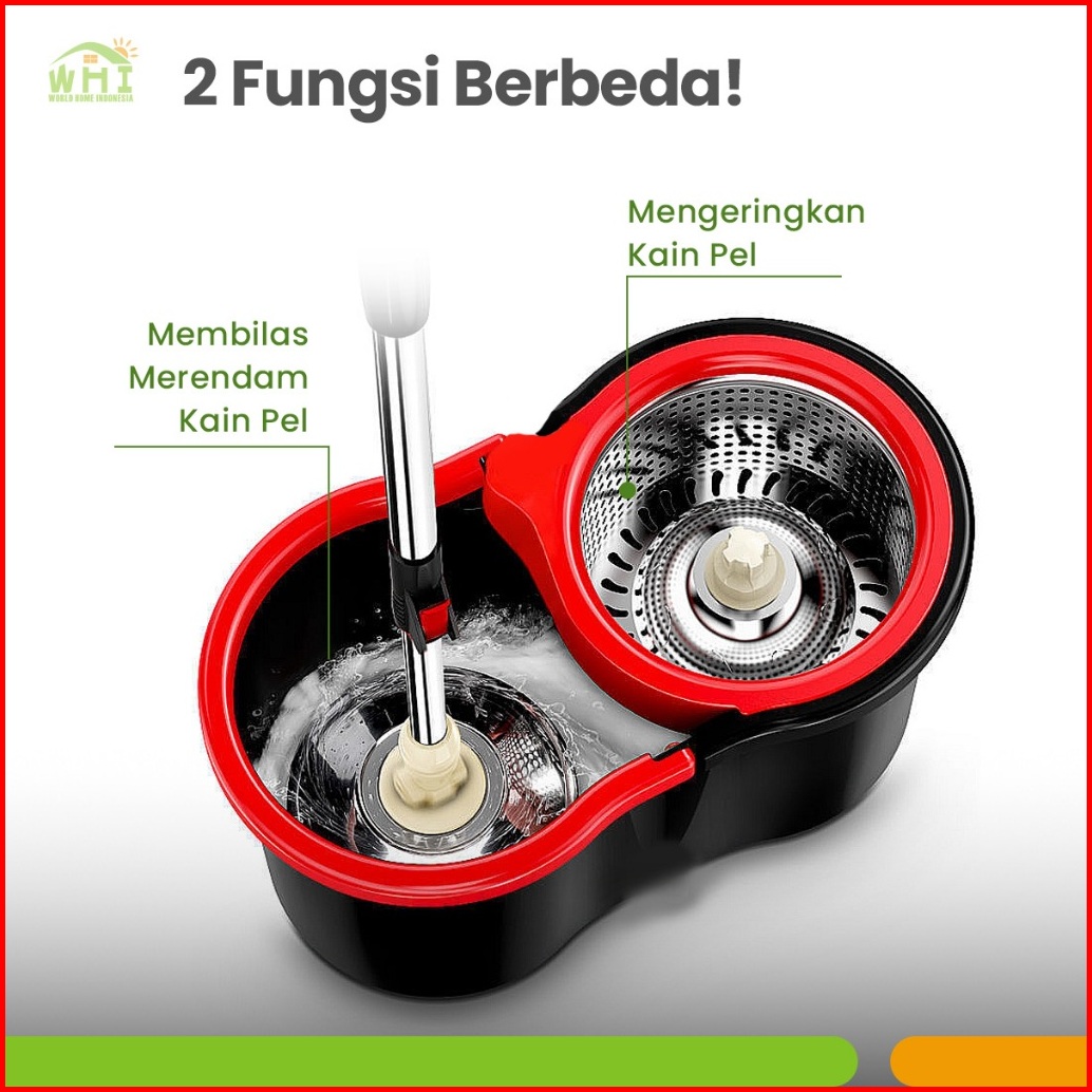 World Home Spin Mop Alat Pel Putar Praktis Ember Stainlees Pel Lantai Supermop Berkualitas