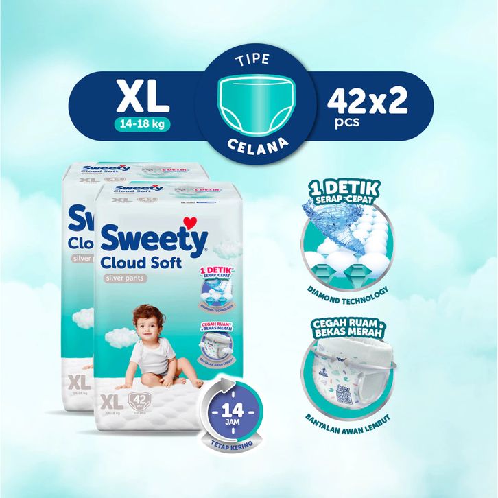 Paket 2 Ball POPOK BAYI SWEETY SILVER PANTS JUMBO S66 M60 L54 XL44 XXL36 x2 Popok Bayi Celana