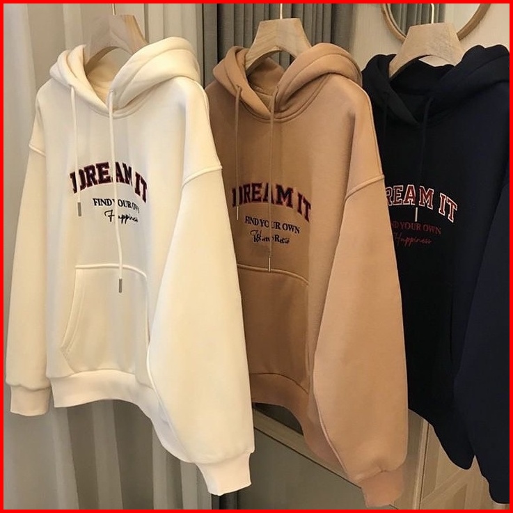 Vallina Premium Sweater Dream It Hoodie Pullover Premium Fleece Tebal Outerwear Basic Remaja Unisex Wanita Pria