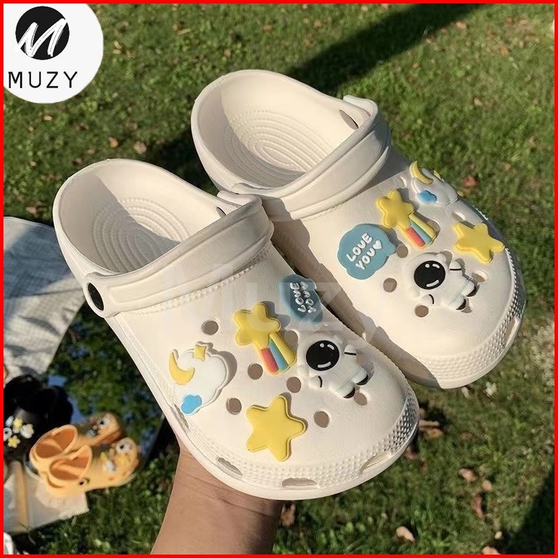Muzy Sandal Anti-slip Motif Lubang Sandal Wanita Sandal Rumah Sandal Tali Belakang Sandal Slop Wanita Hsn105