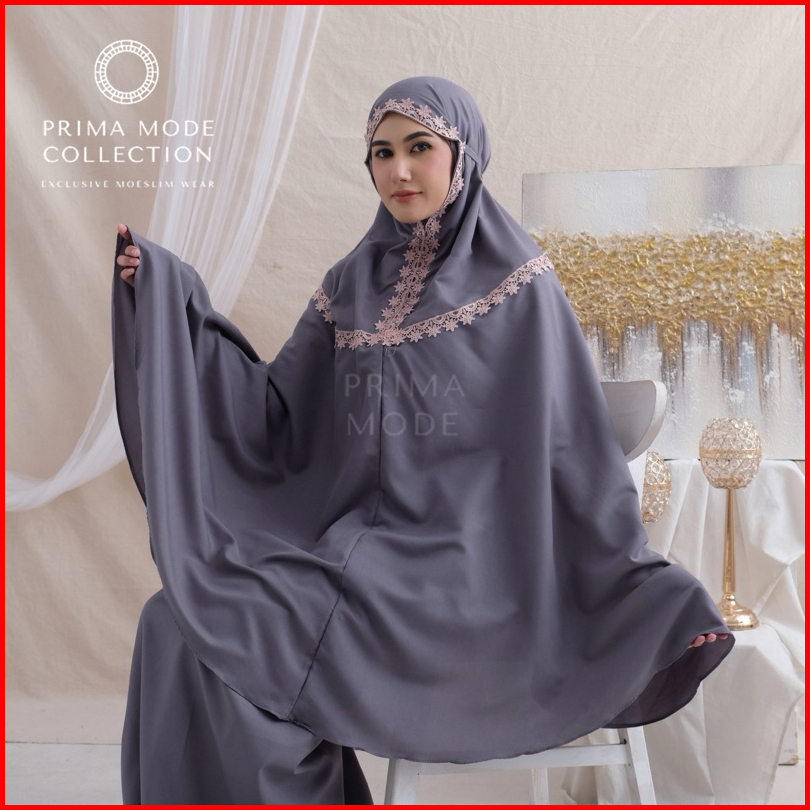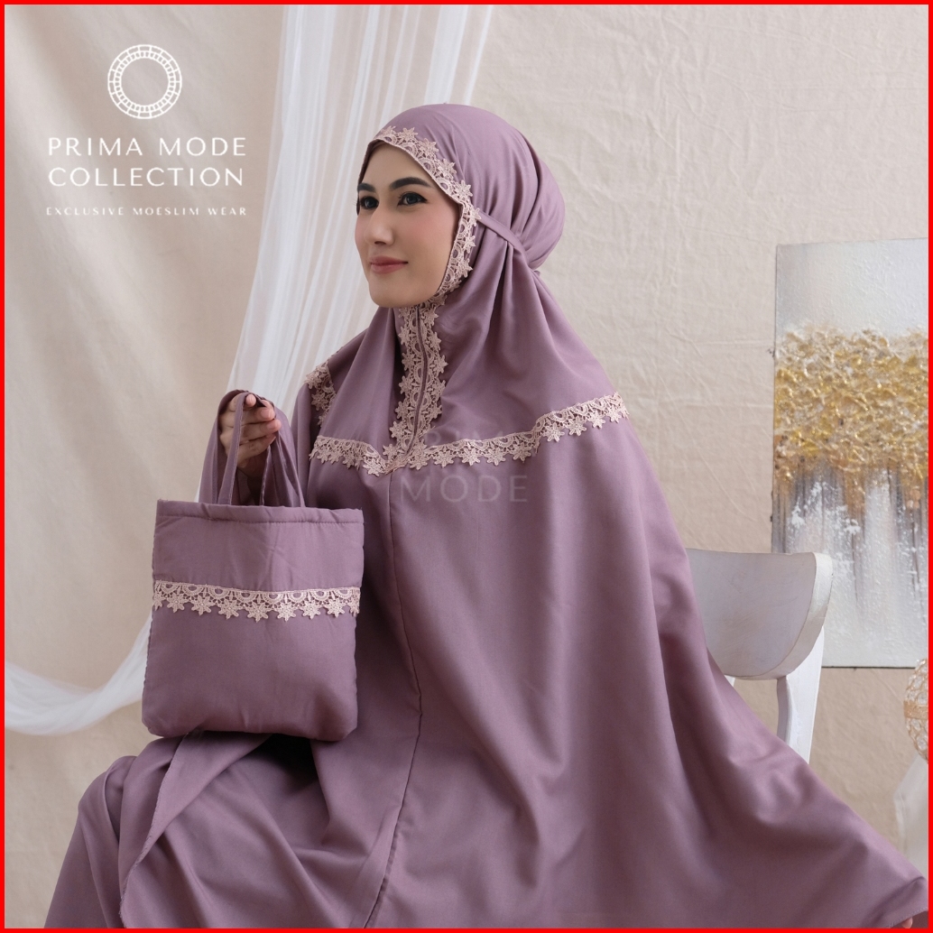Prima Mode - Mukena Hawa Renda Daily Renda Mewah Dewasa Travel Mukena Katun Micro Panjang Pouch