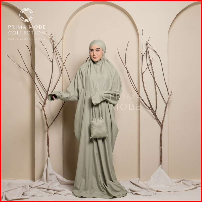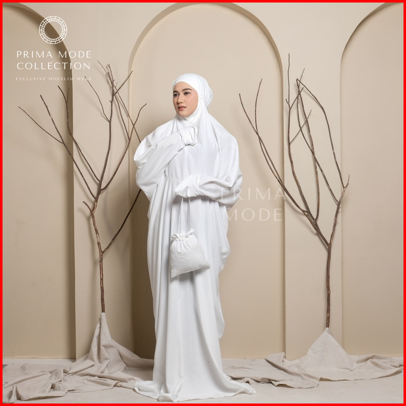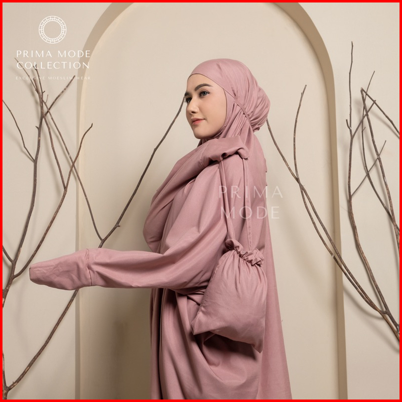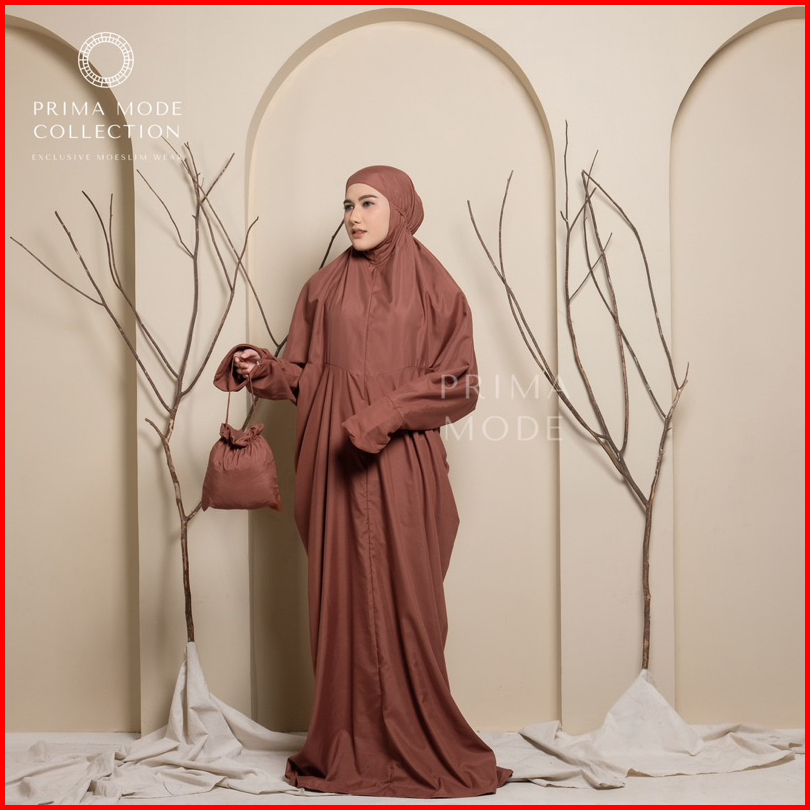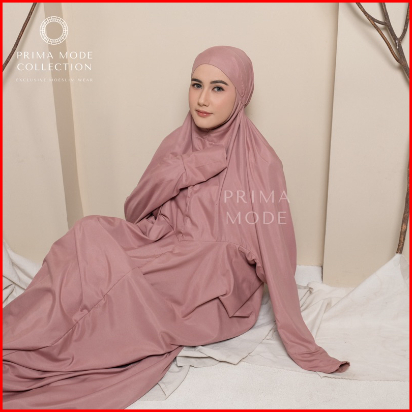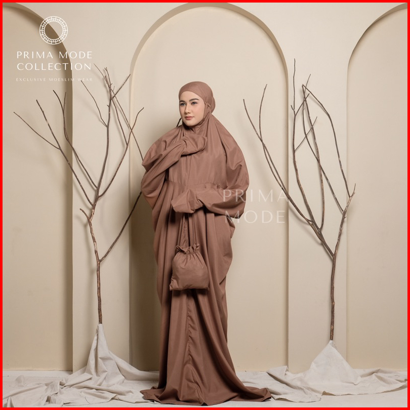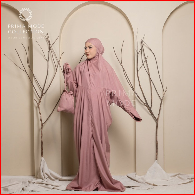 Prima Mode - Mukena Terusan Lajuran Traveling Ainun Katun Premium Polos Jumbo