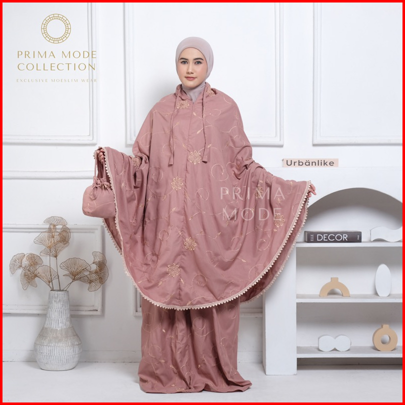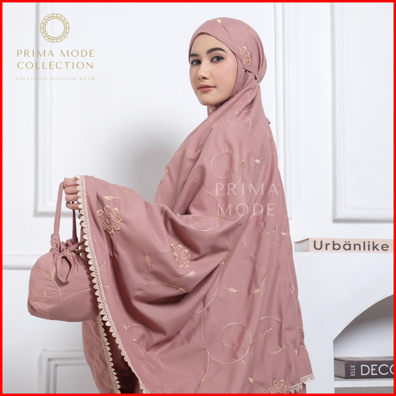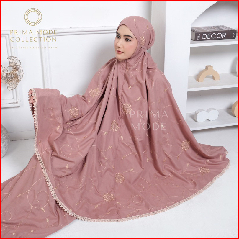 Prima Mode - Mukena Dewasa 2in1 Gracella Reborn Terbaru Jumbo Full Bordir Bunga Teratai Katun Premium