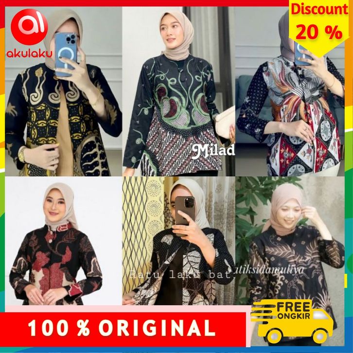 ATASAN BATIK WANITA MODERN BAJU BATIK SPESIAL WARNA HITAM/ BLACK SERIES KANTOR WANITA BATIK NEW BLUS SERAGAMAN