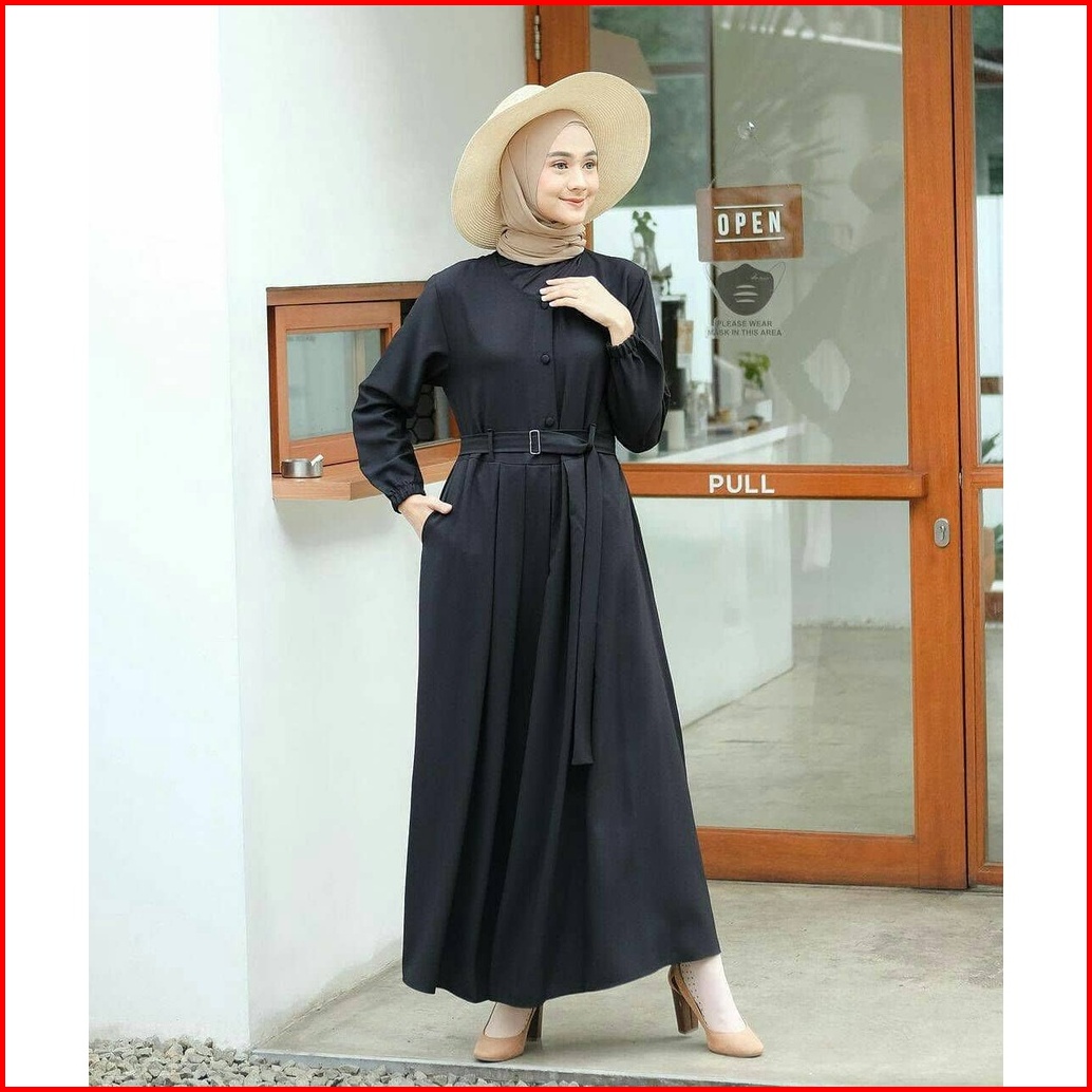 Elsa Dress Gamis Wanita Simple Dan Elegan Bahan Tifanny Twill Premium Muslim Nyaman Fit Flowy Karet Lembut