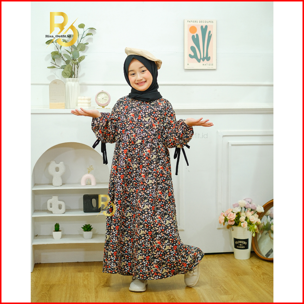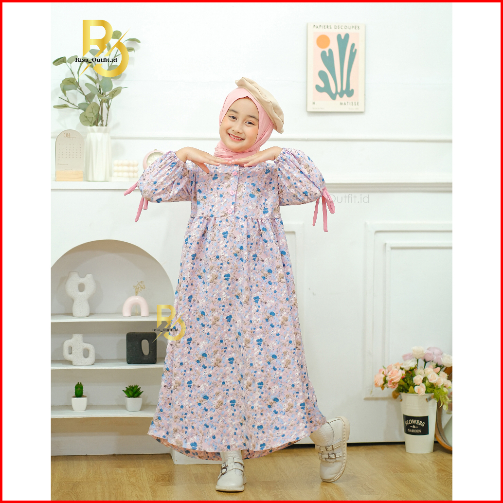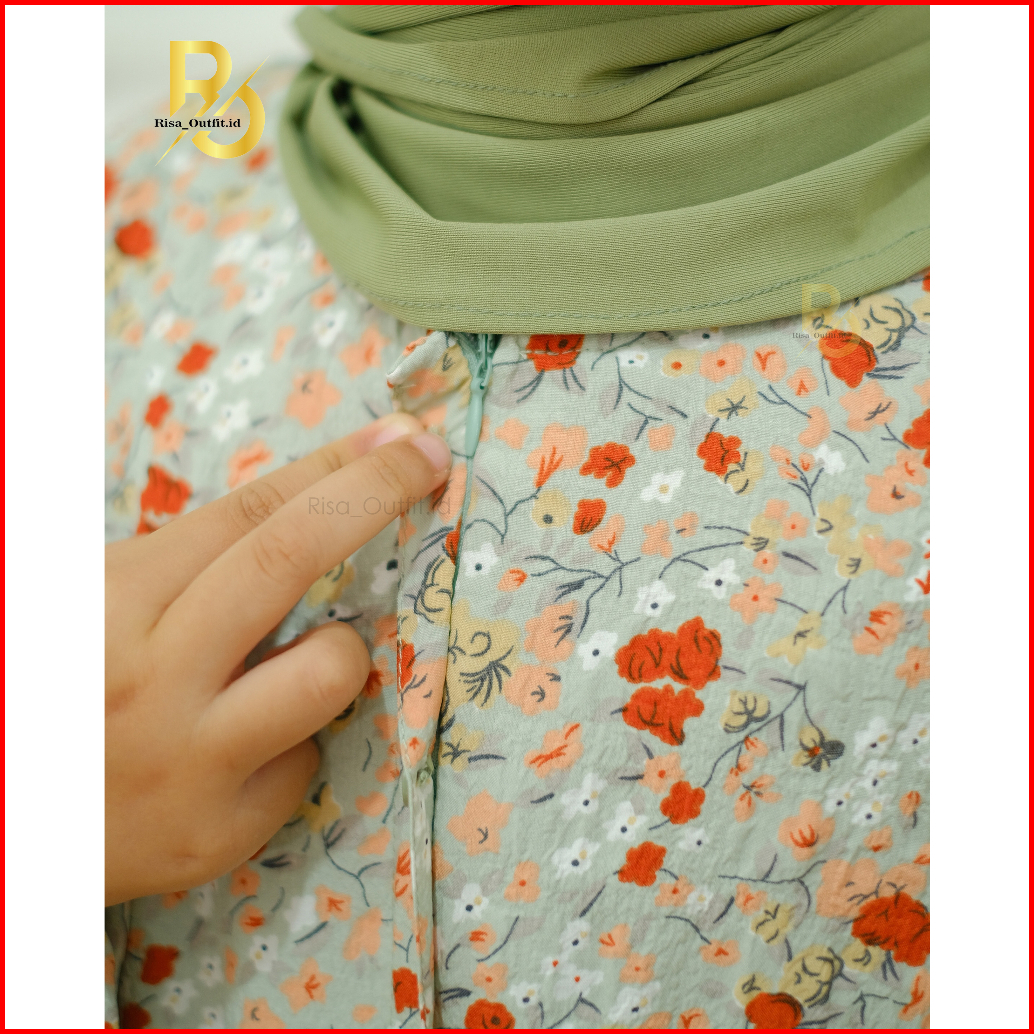 Gamis Crinkle Motif Bunga Kekinian Baju Muslim Anak Perempuan Gamis Anak Crinkle Zalina Kids