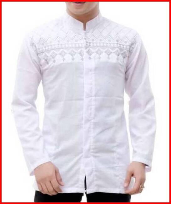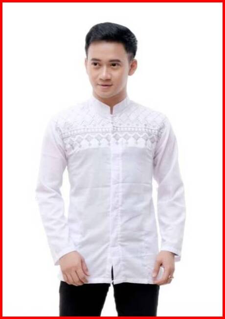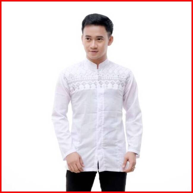 Kemeja Koko Bordir Putih Lengan Panjang Busana Muslim Pria Bahan Katun Adem Murah Modern Batik Panjikhamim