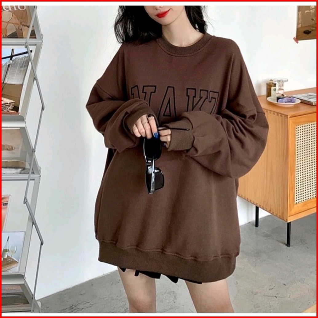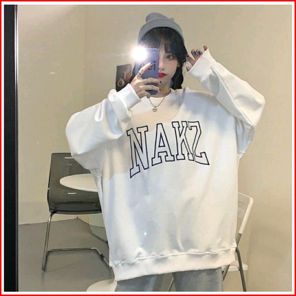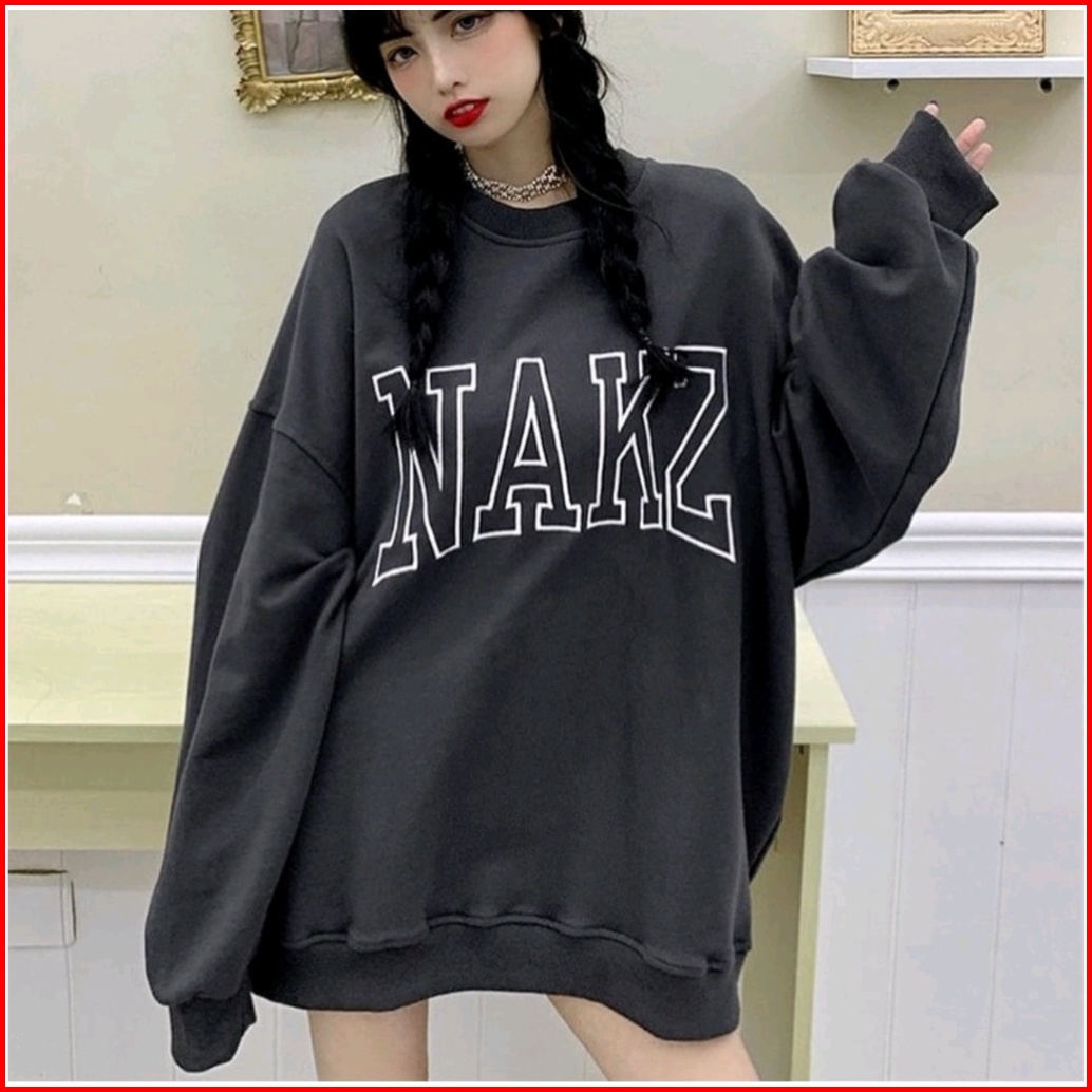 Nakz Oversize Sweater Oblong Crewneck Wanita Fleece