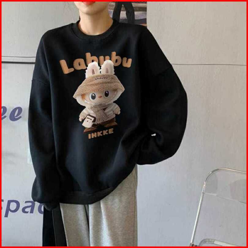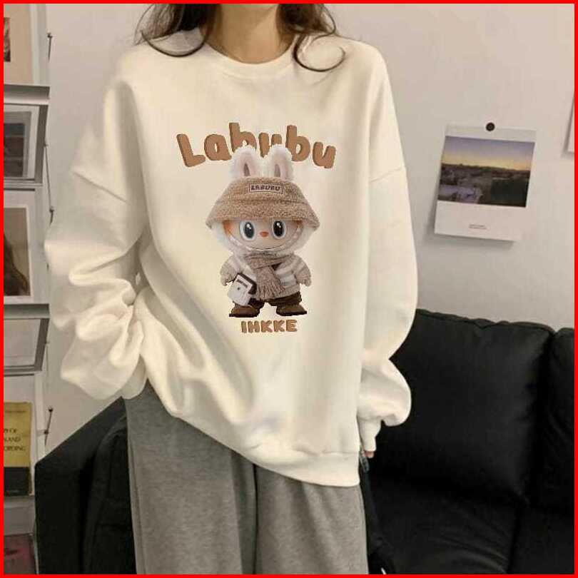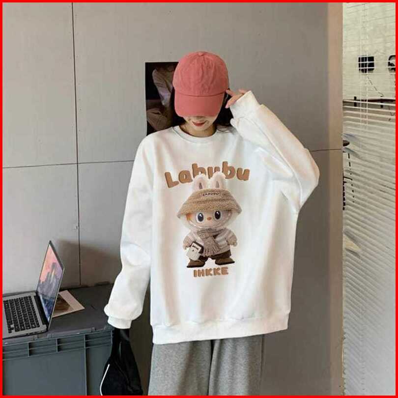 Sweater Oblong Crewneck Oversize Wanita Fleece G24