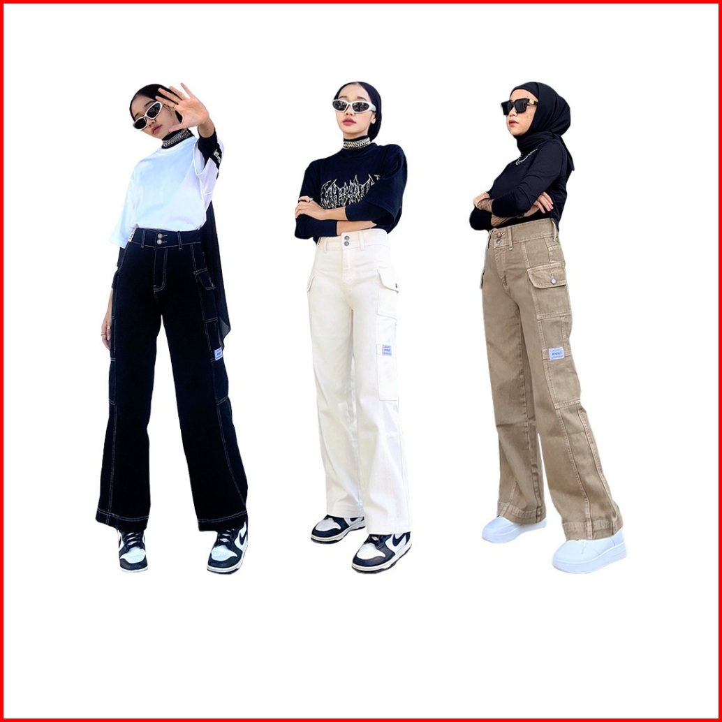Jiniso - Cargo Baggy Highwaist Hands Up Jeans