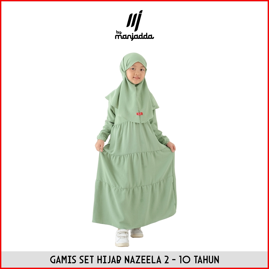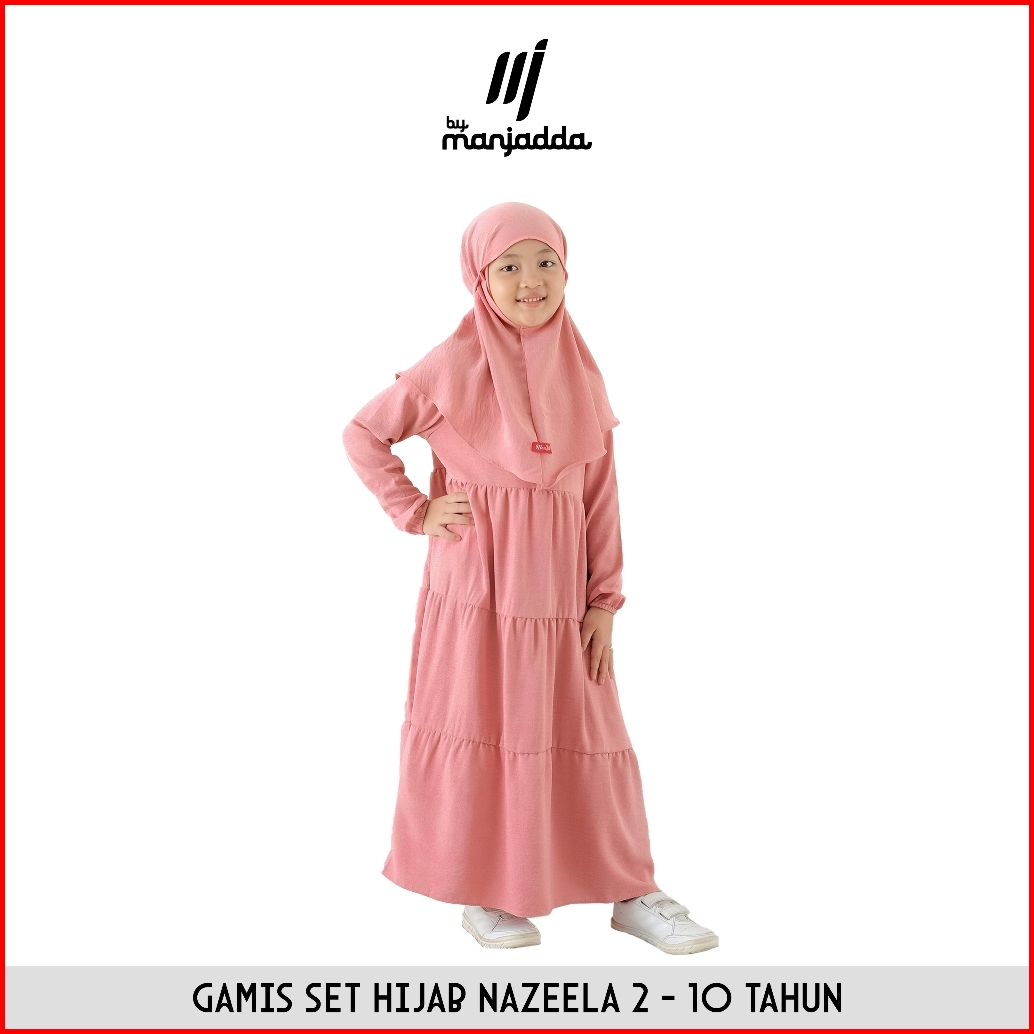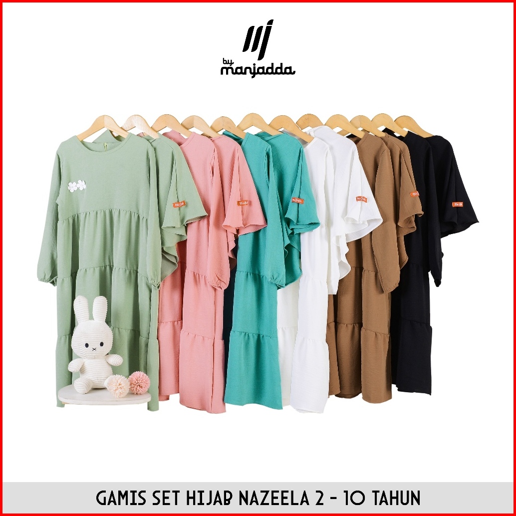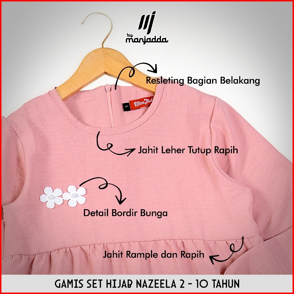 Manjadda - Nazeela Set Gamis Hijab Anak Perempuan 1- 10 Thn Set Gamis Putih Anak Haji Umroh Manasik