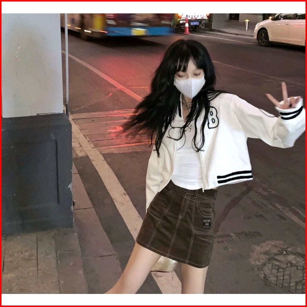B Baseball Crope Jaket Varsity Jaket Basbell Korean Style Wanita