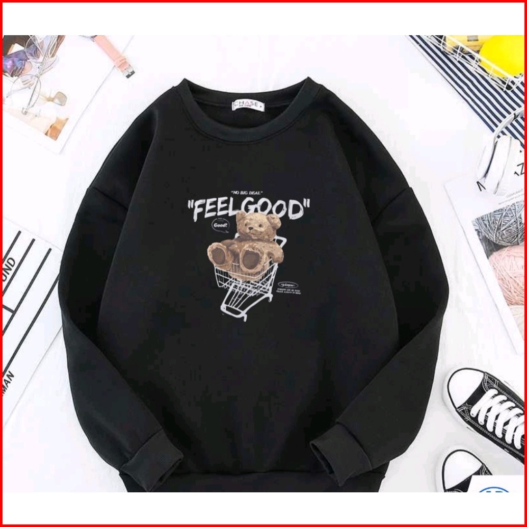 Feel Good Sweater Oblong Crewneck Wanita Fleece Murah