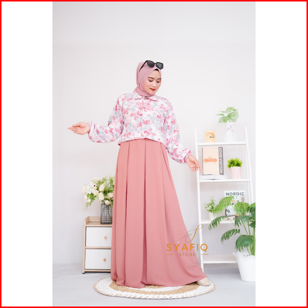 Inara Dress Gamis Crincle Outer Bunga By Syafiq Store
